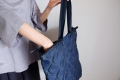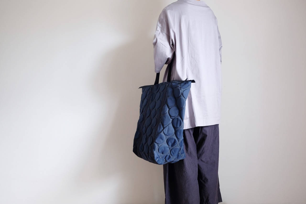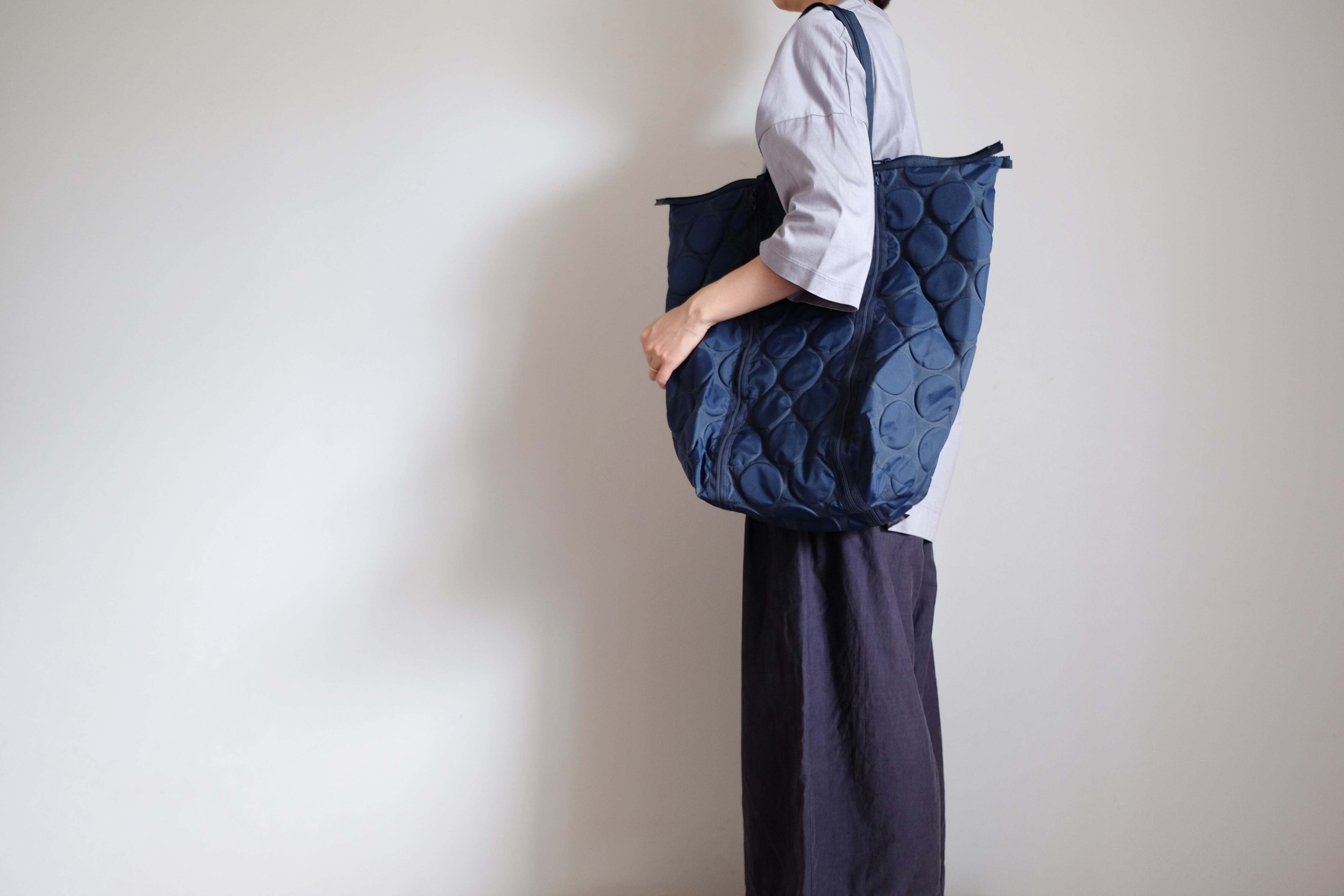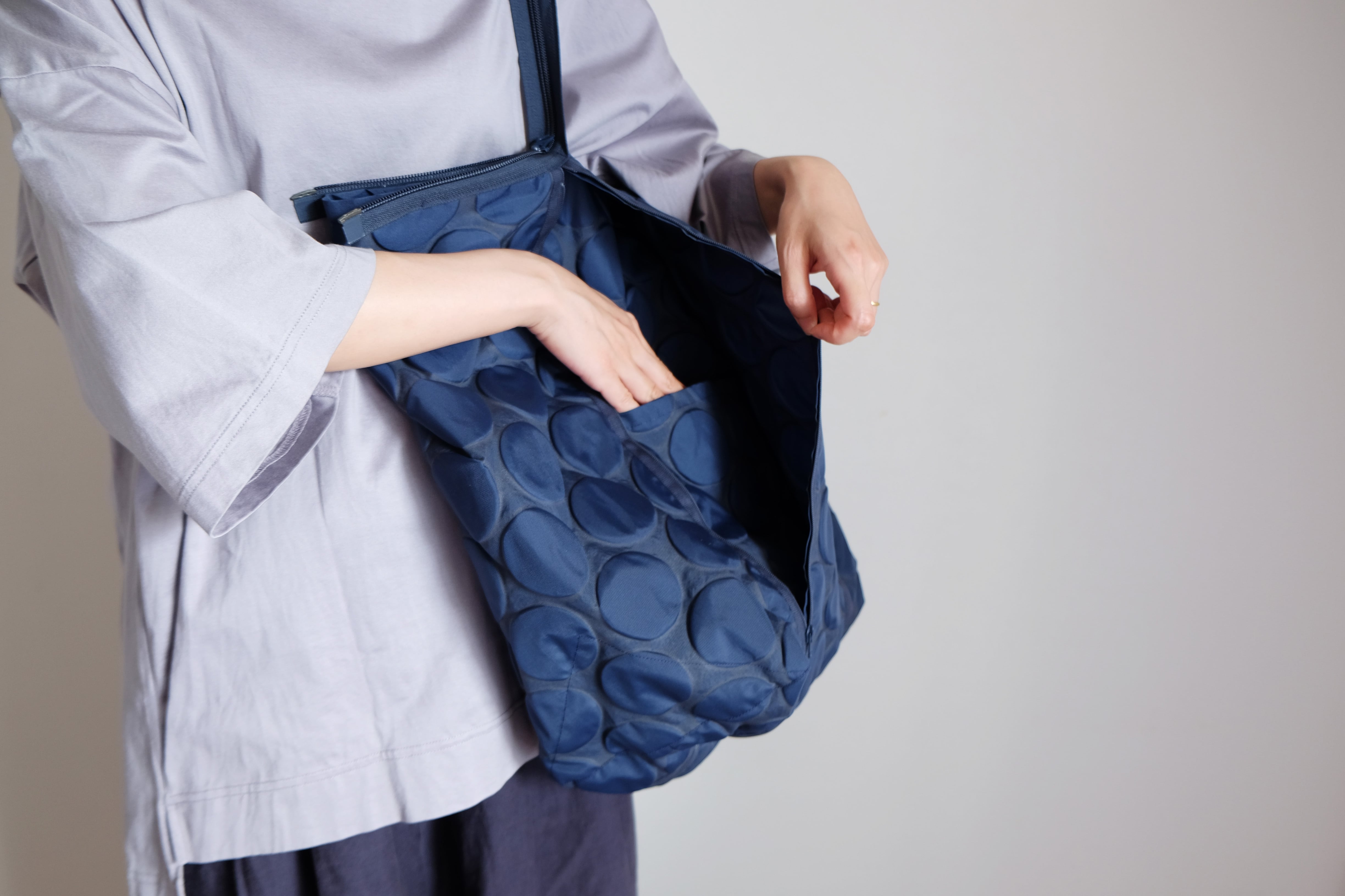 新作・軽量/凹凸水玉模様がかわいい/ナイロン/肩掛けマチ付きバッグ/A4対応・大容量【ジップポケットジップトートバッグ/ネイビー/ポルカドット】/ zip pocket zip tote bag /nylon/polka dot pattern【 navy 】 | 1o(wano-/ワンオー)丁寧な手仕事・ファッション・帽子・服・プリントTシャツの通販
