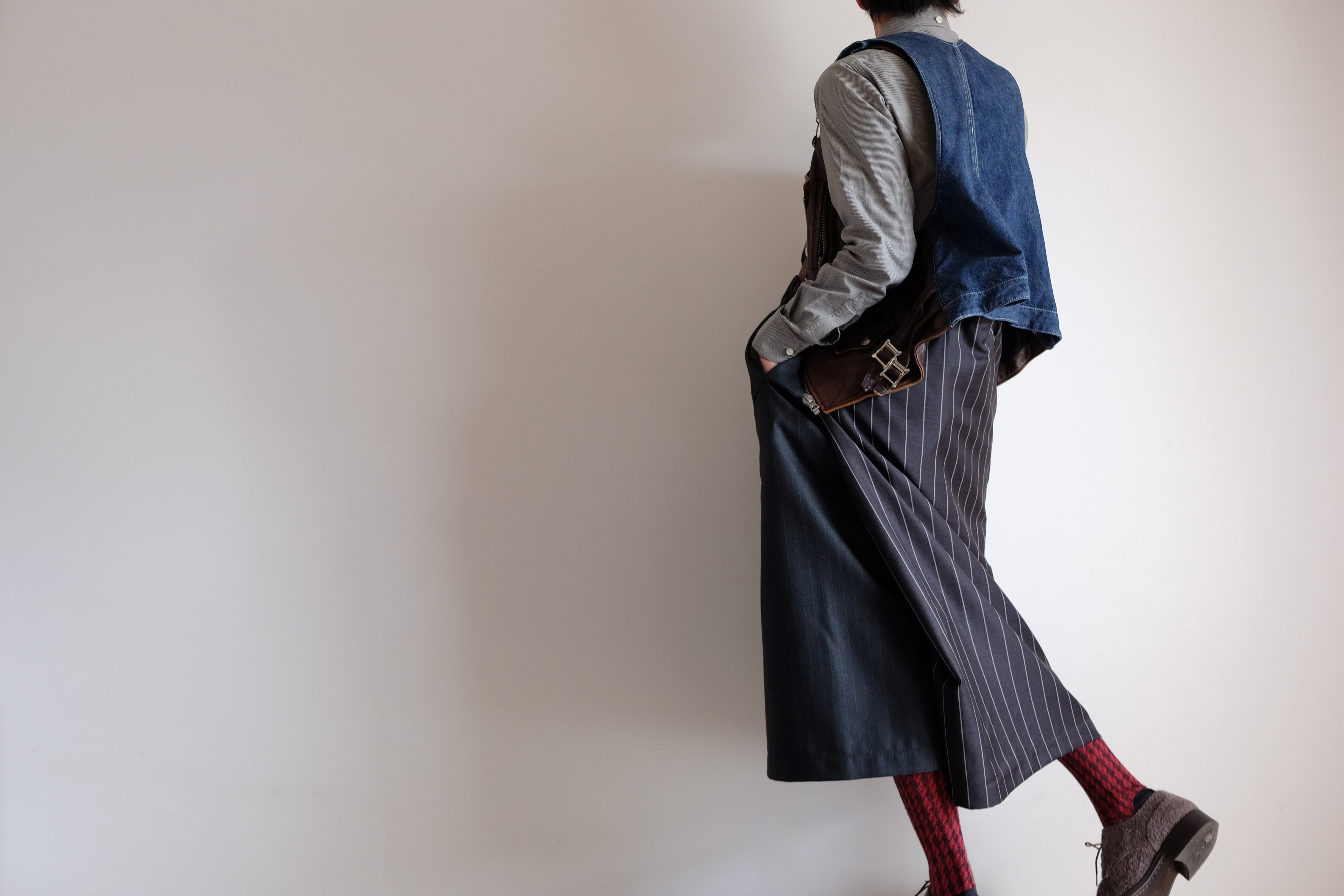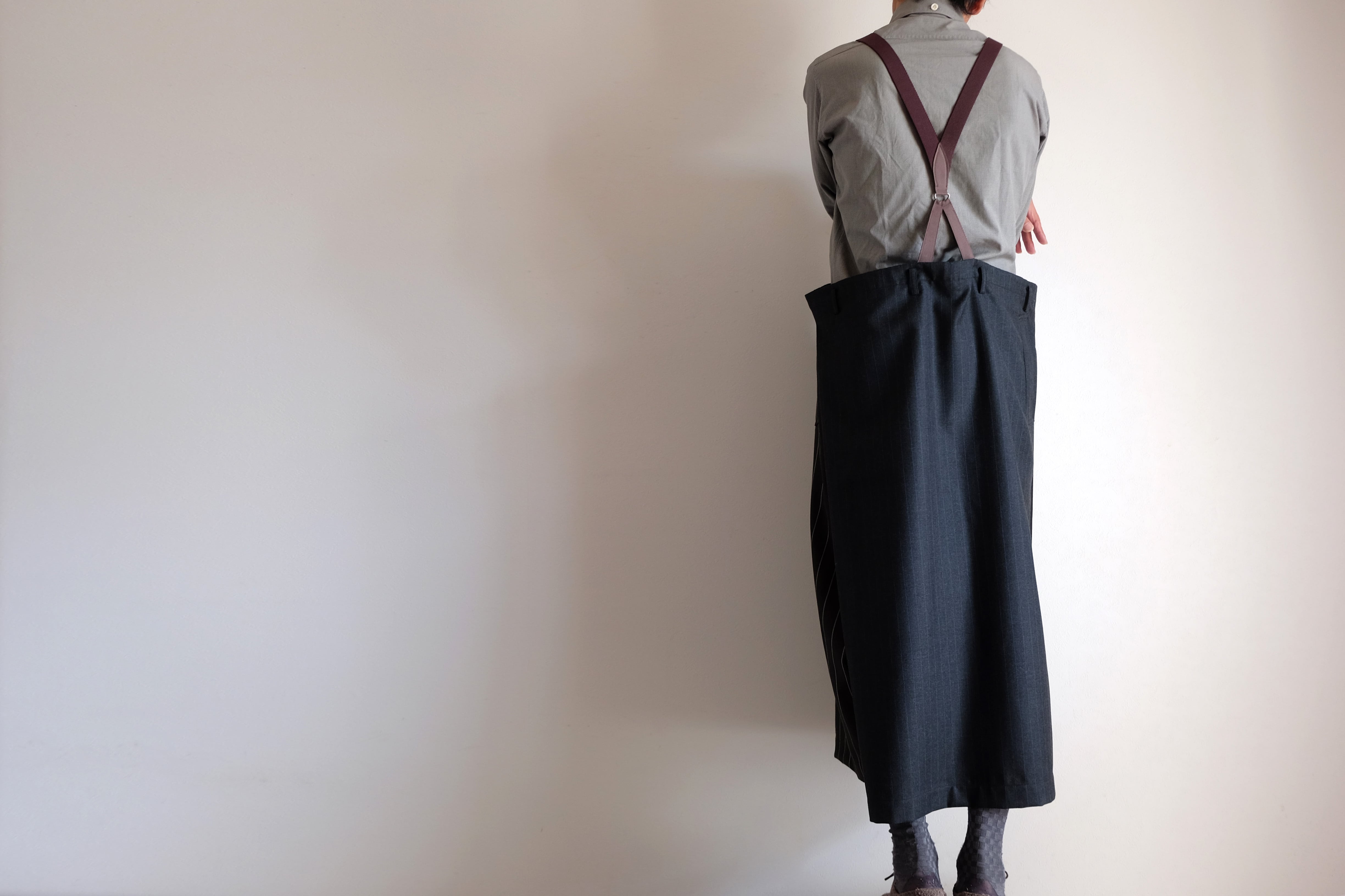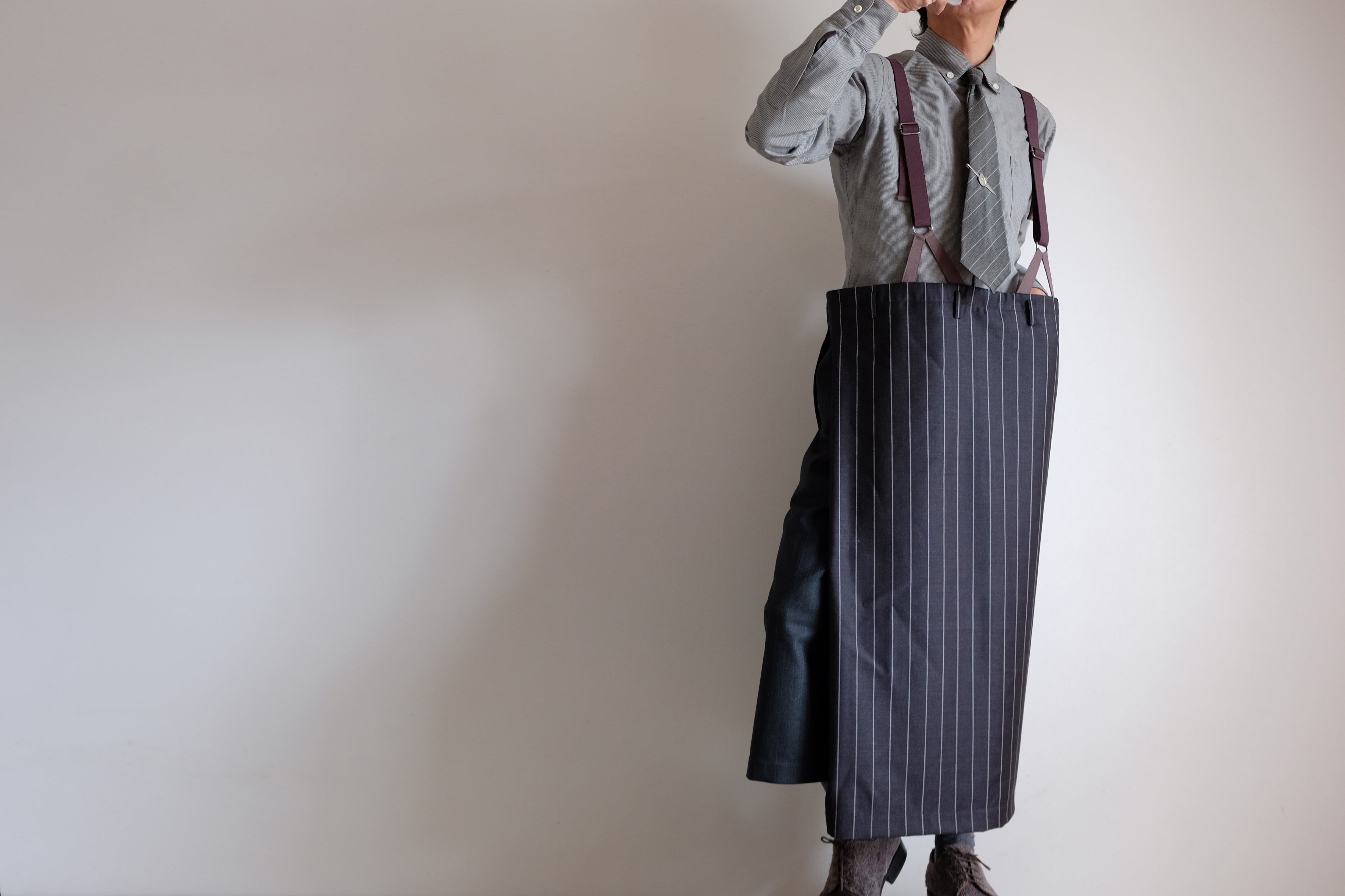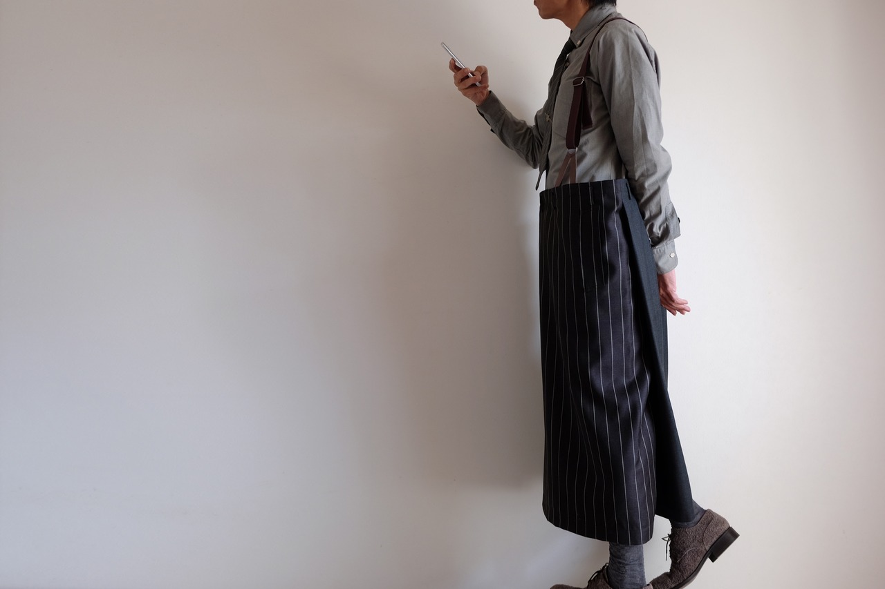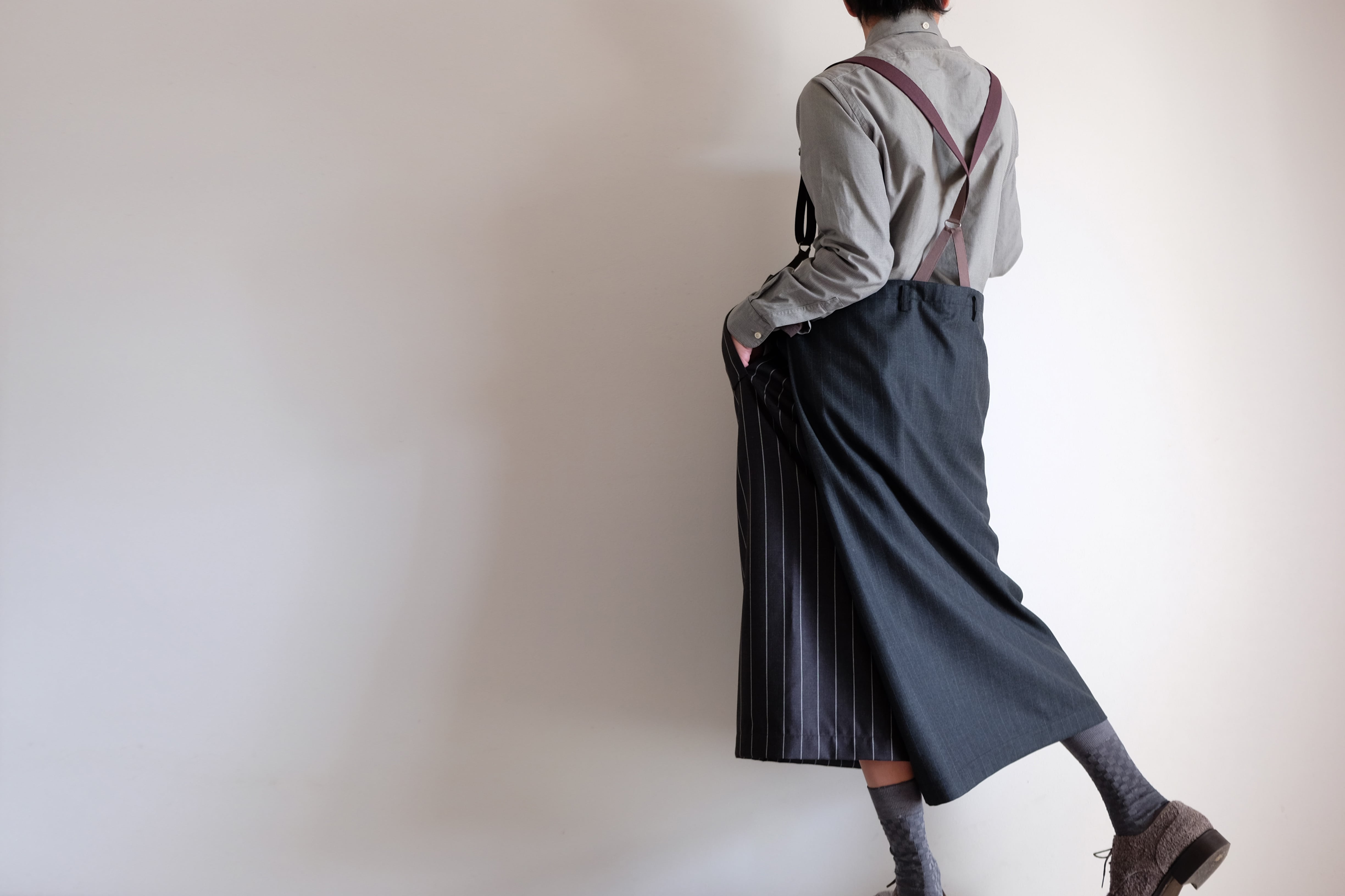 cha-sama 受注分・エプロンラップパンツ / ウールー【2種ダークグレーストライプ・セパレート】