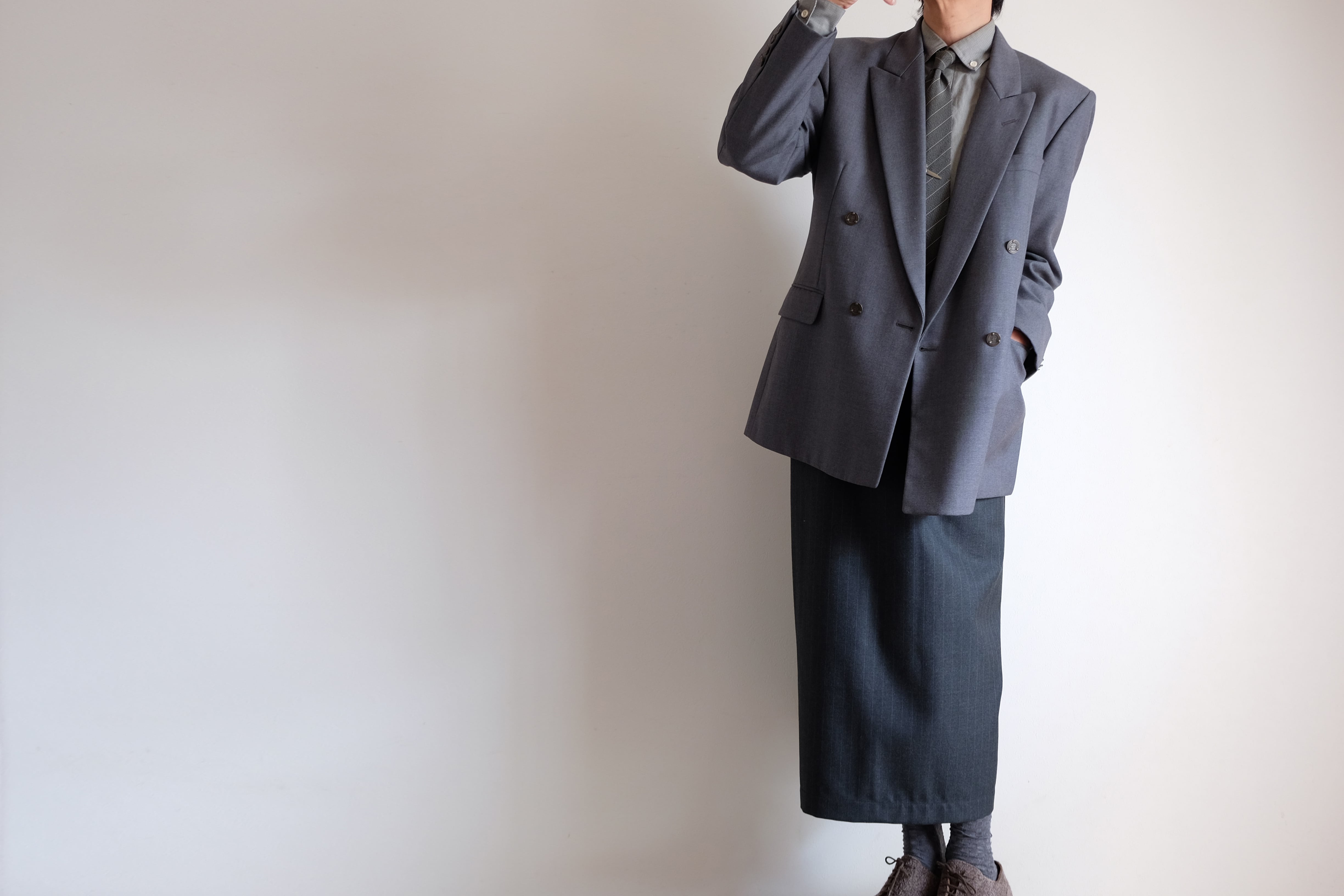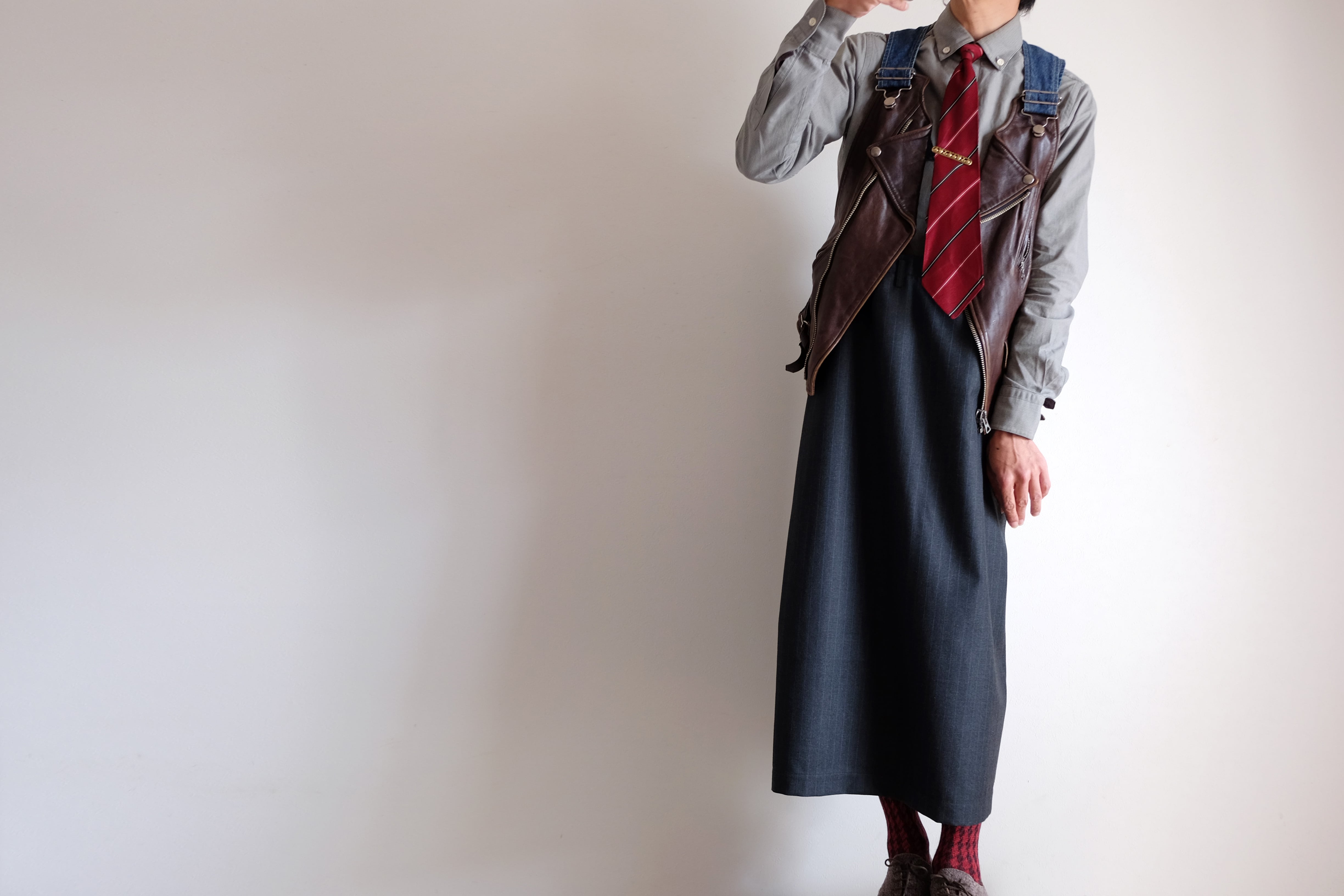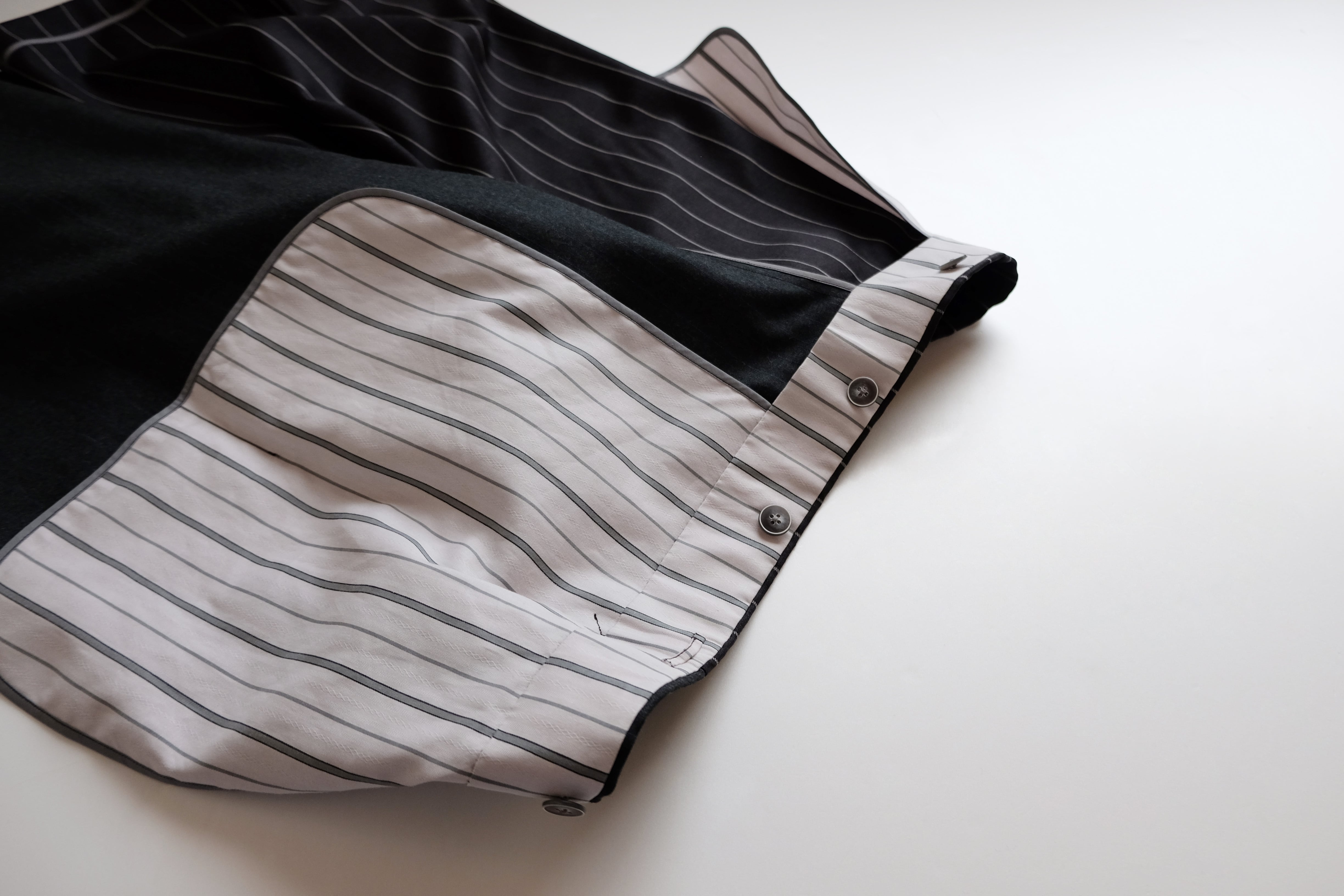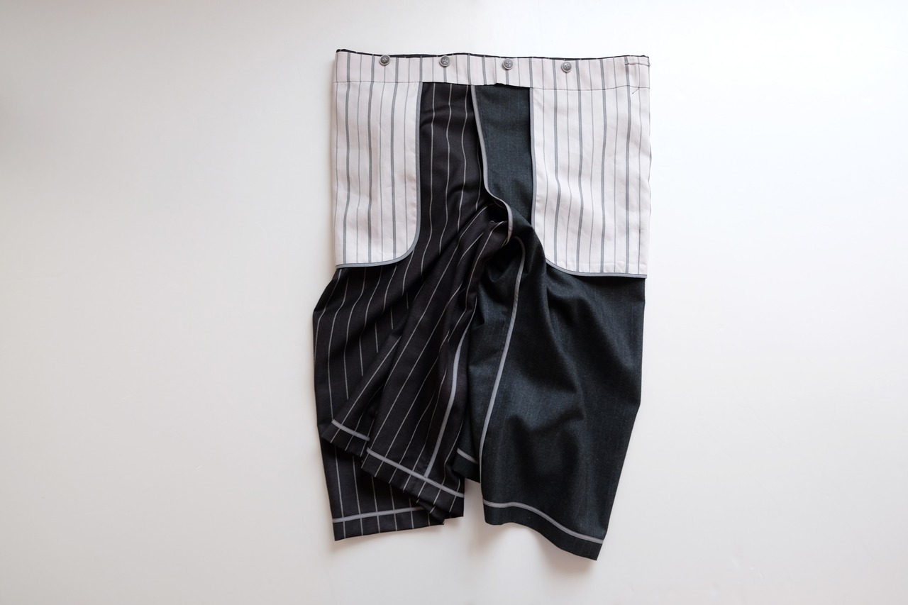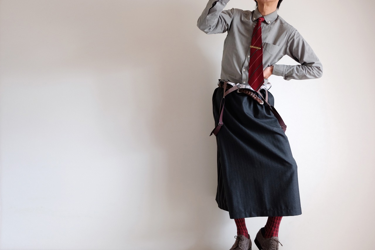 cha-sama 受注分・エプロンラップパンツ / ウールー【2種ダークグレーストライプ・セパレート】