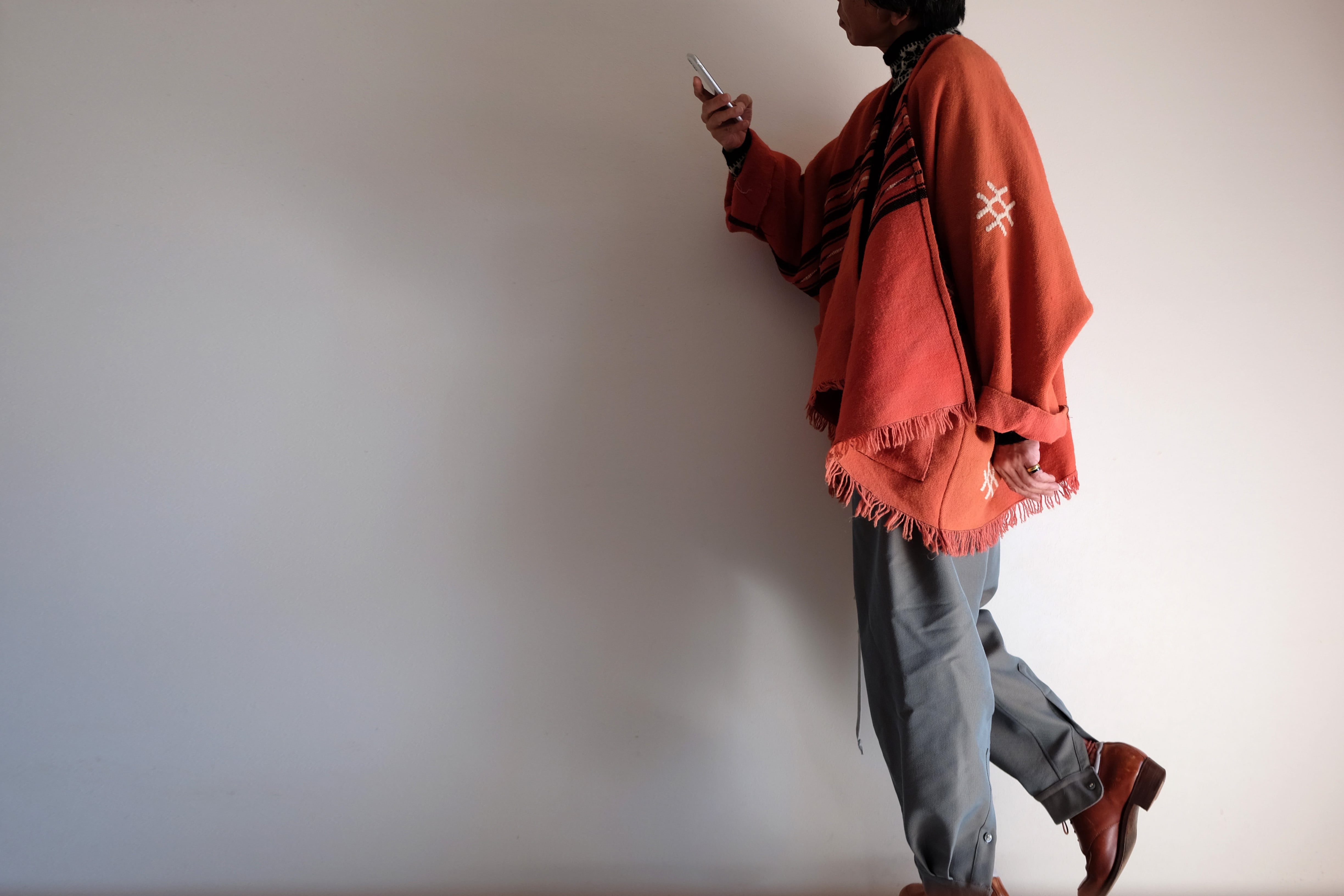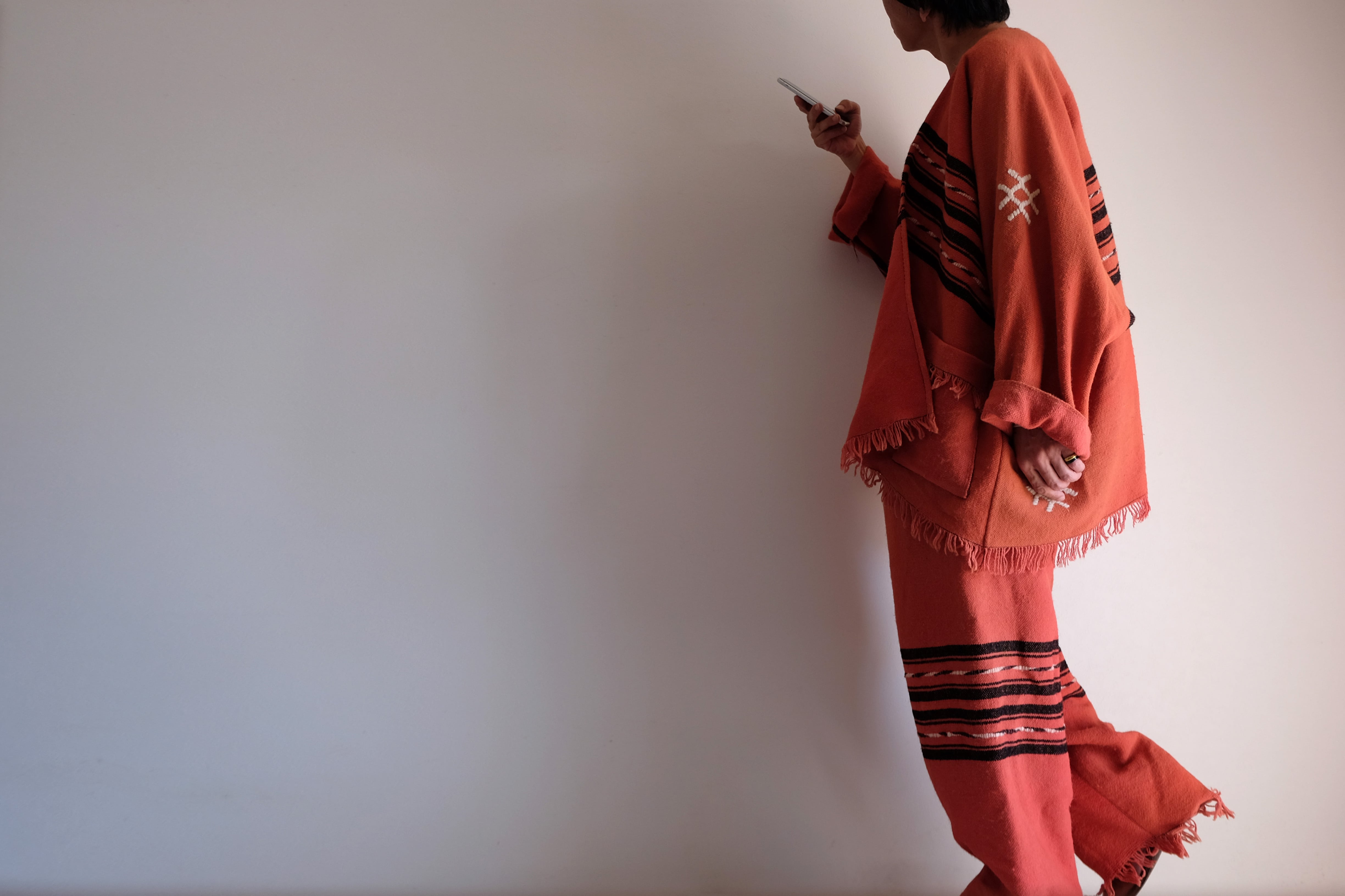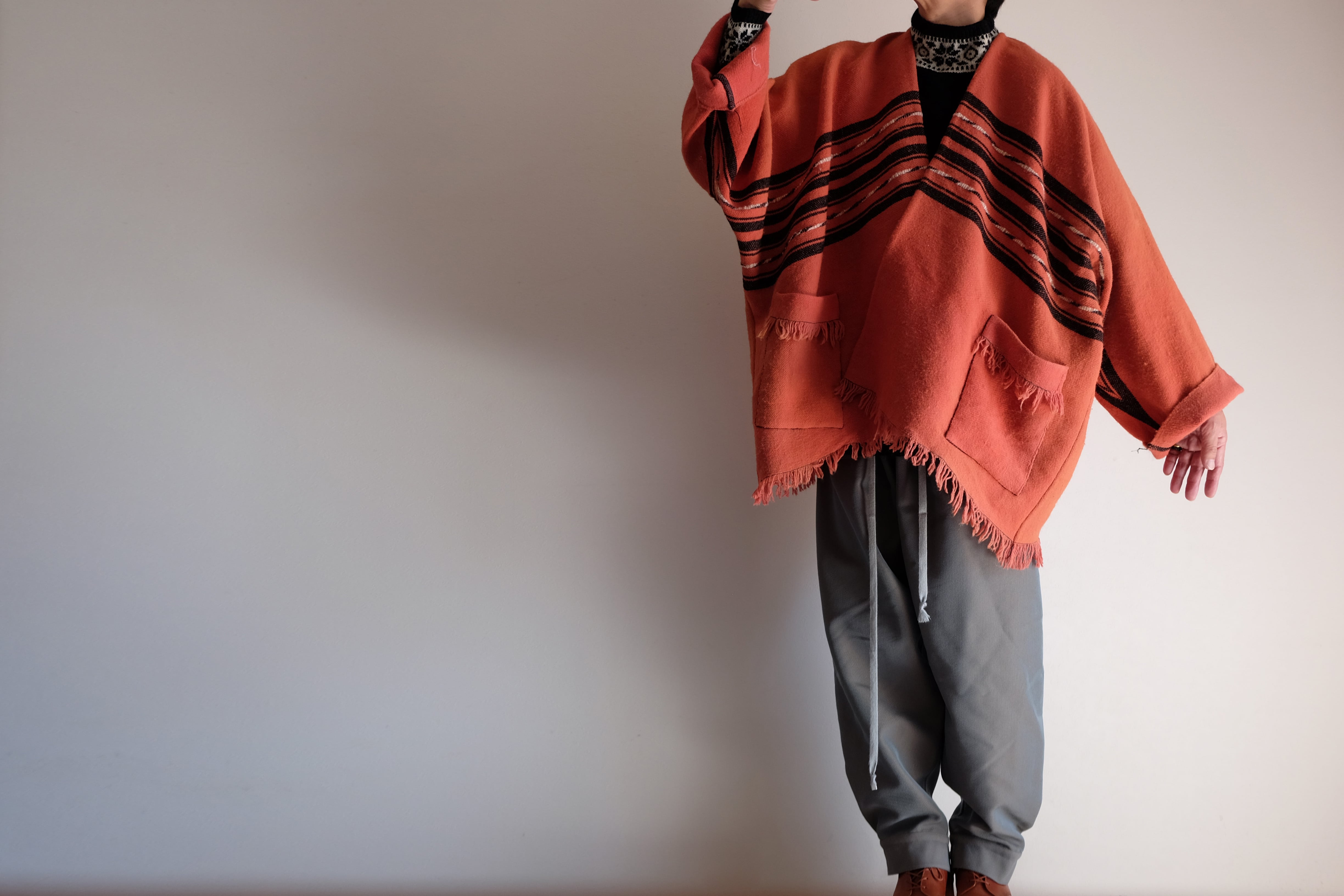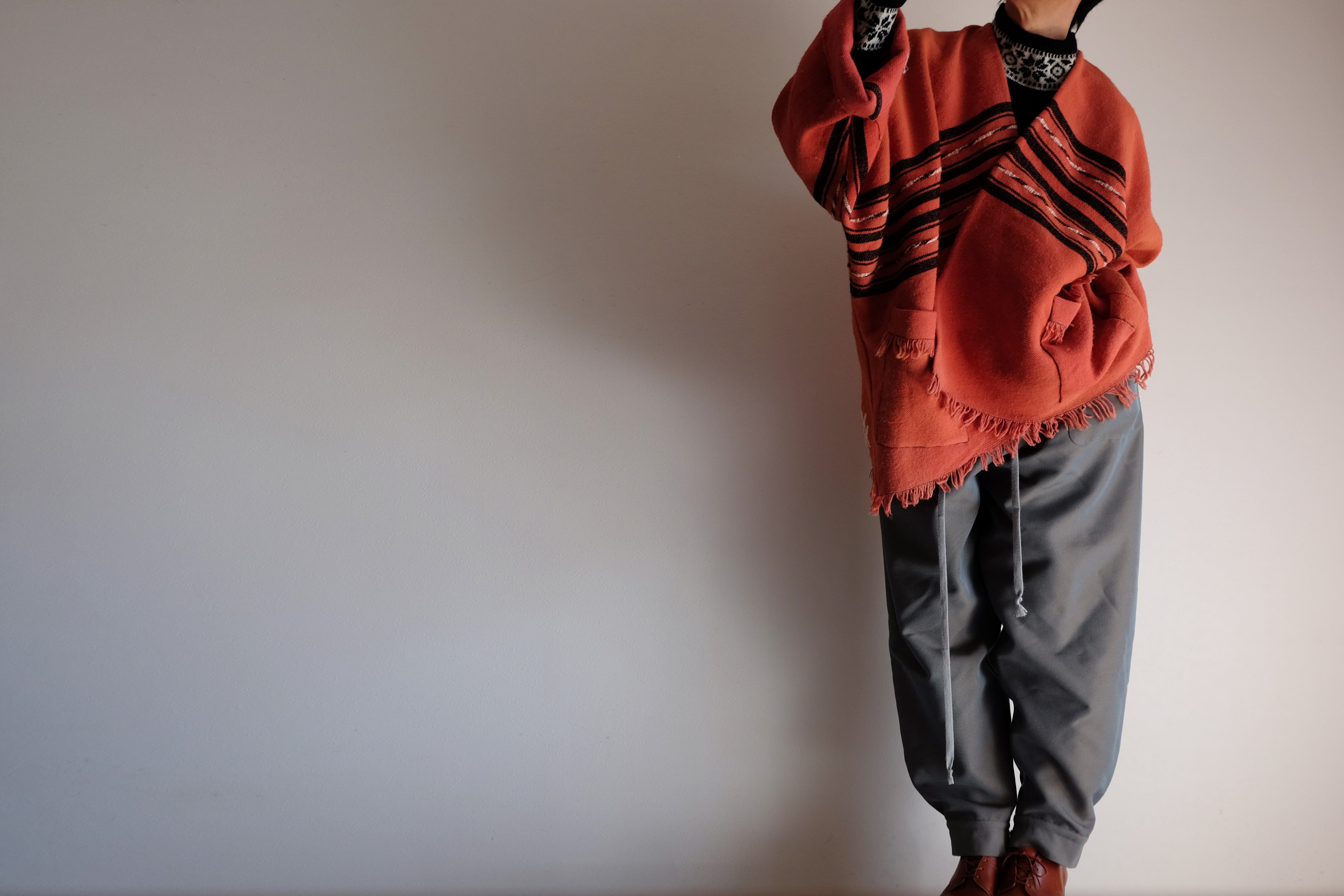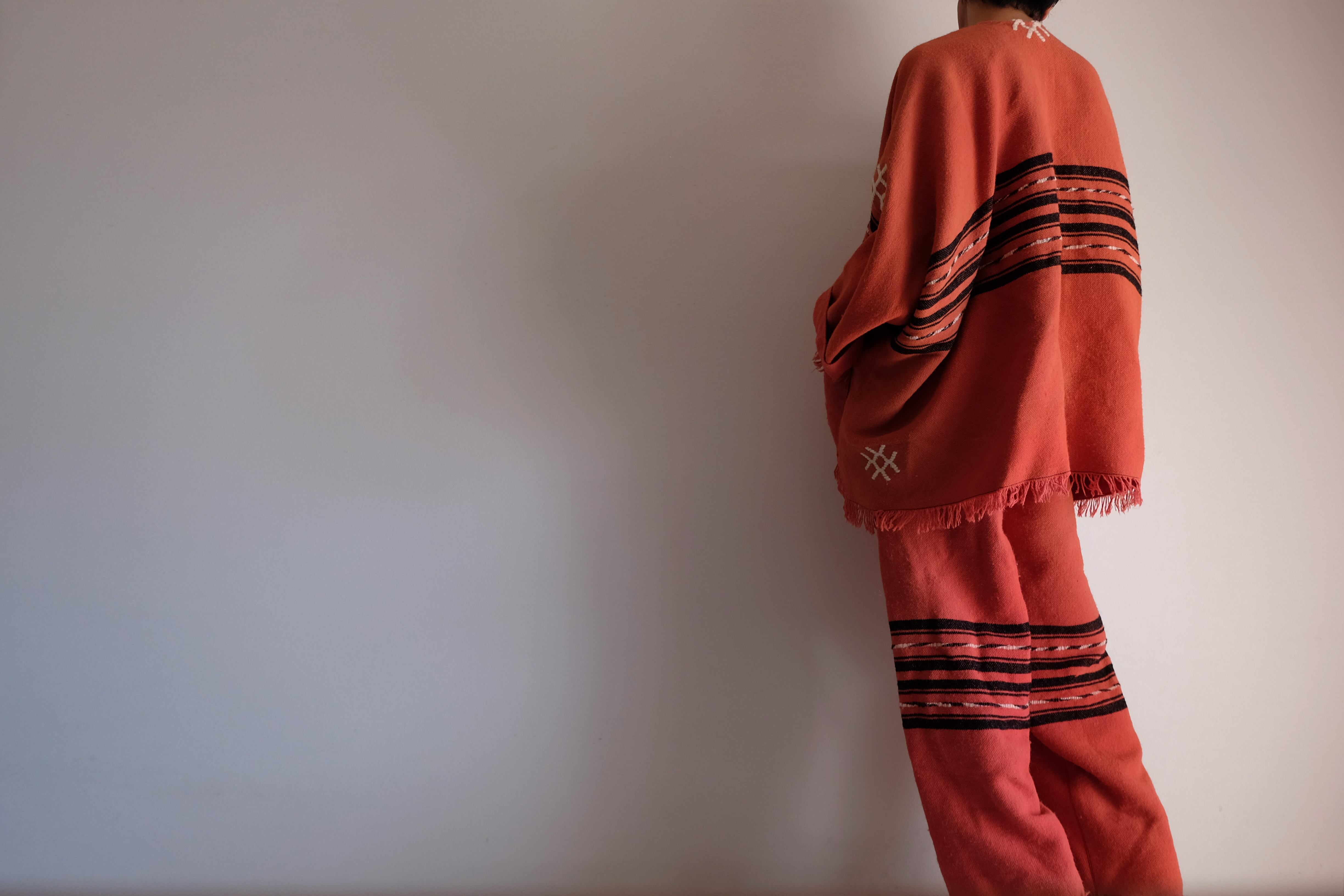 袖付きポンチョとイージーパンツのセットアップを作りました。