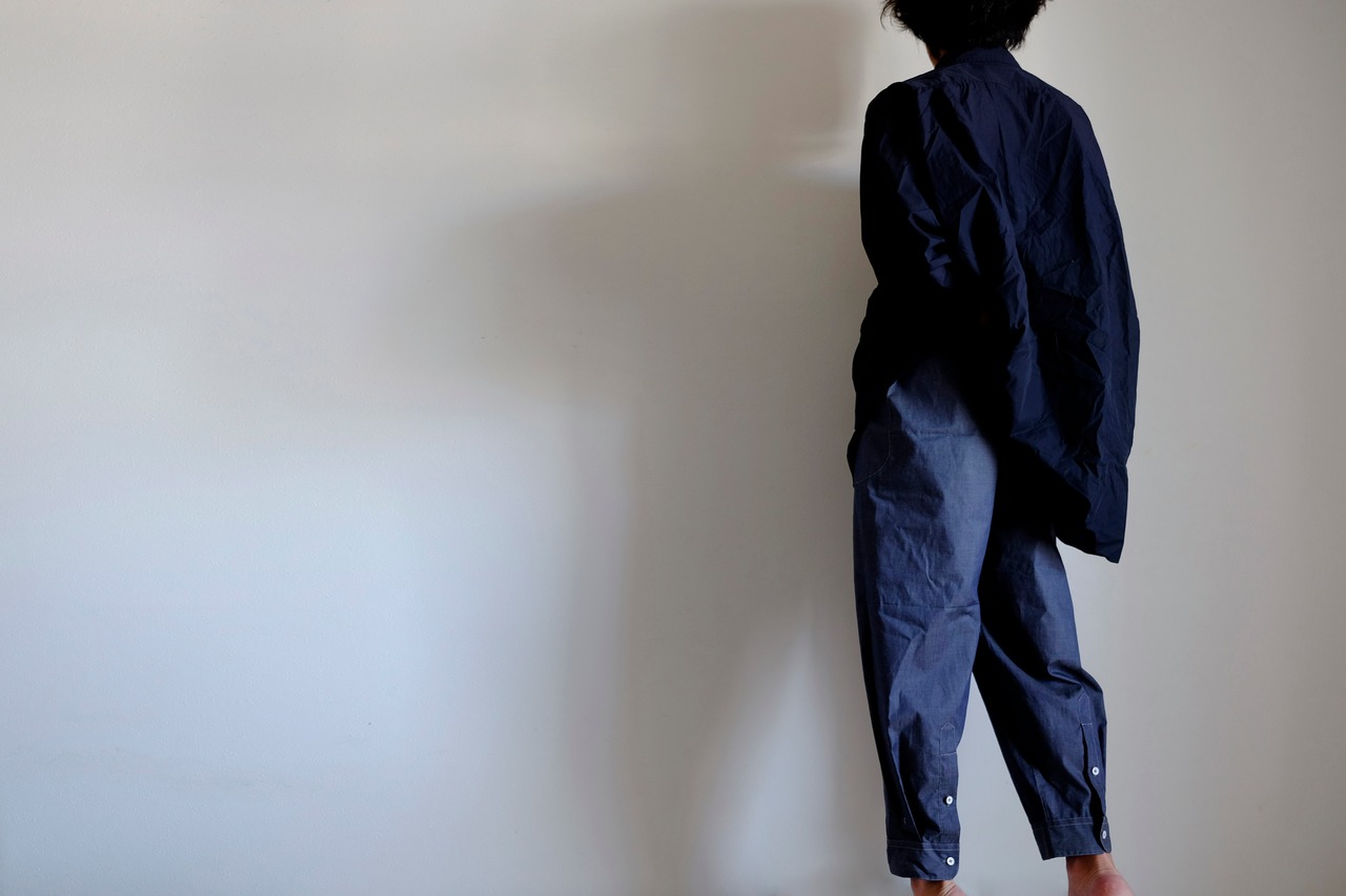 シャツ袖パンツ / コットンシャンブレー【インディゴ風】/ shirt sleeve pants / cotton chambray【indigo blue 】
