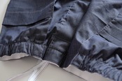 ウエストは、内側に平ゴムを縫い合わせ、更に紐を通しています。