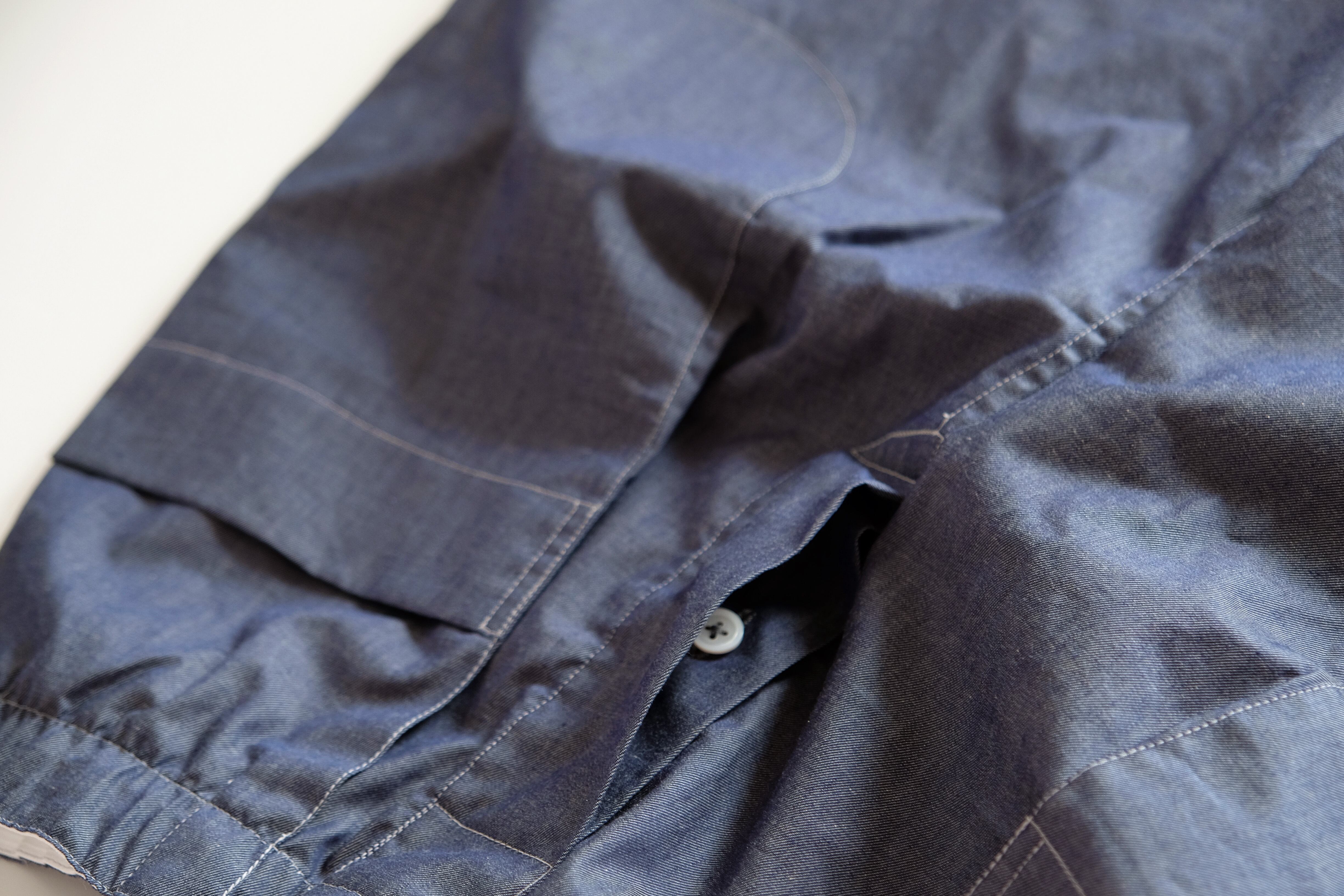 シャツ袖パンツ / コットンシャンブレー【インディゴ風】/ shirt sleeve pants / cotton chambray【indigo blue 】 | 1o(wano-/ワンオー)丁寧な手仕事・ファッション・帽子・服・プリントTシャツの通販