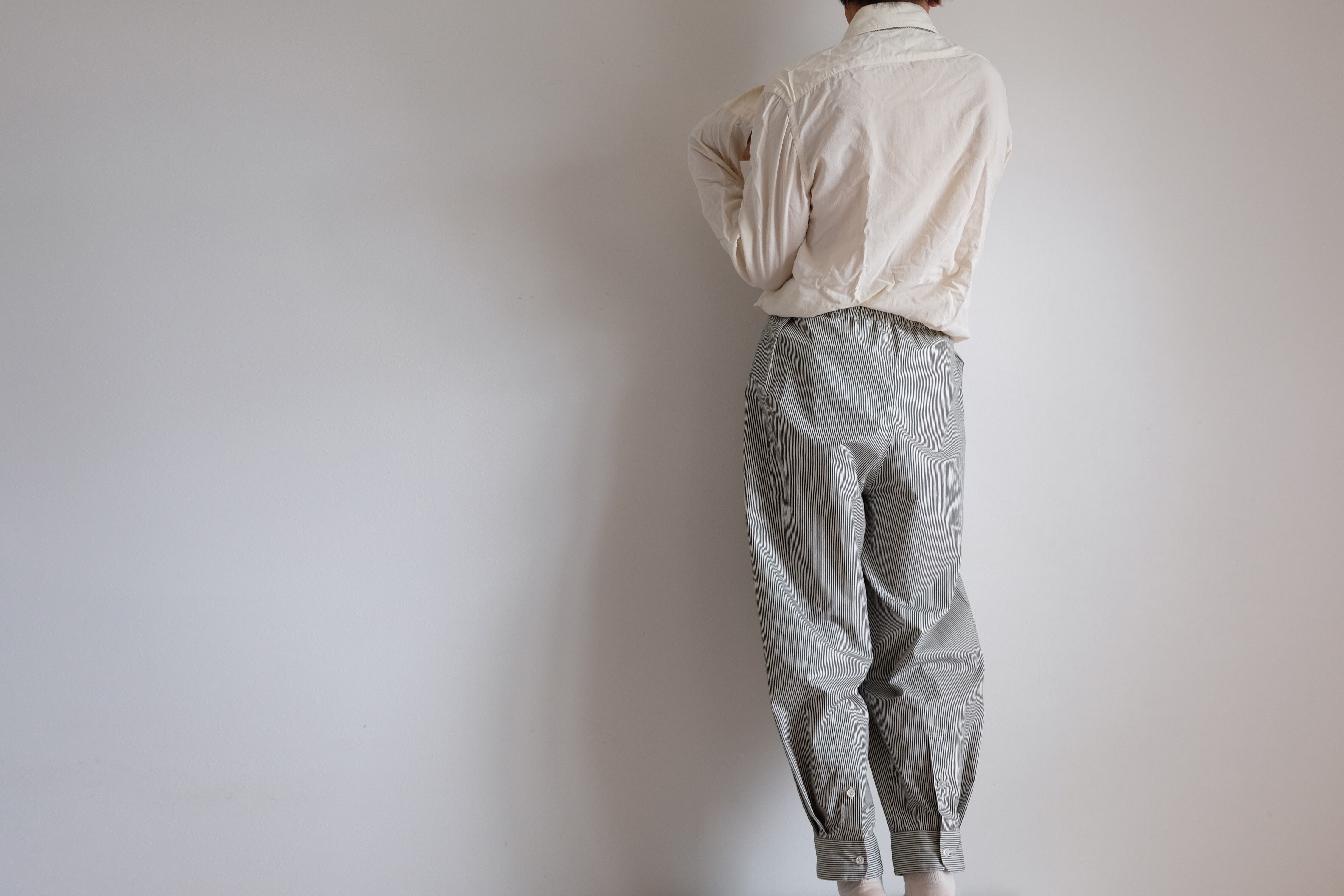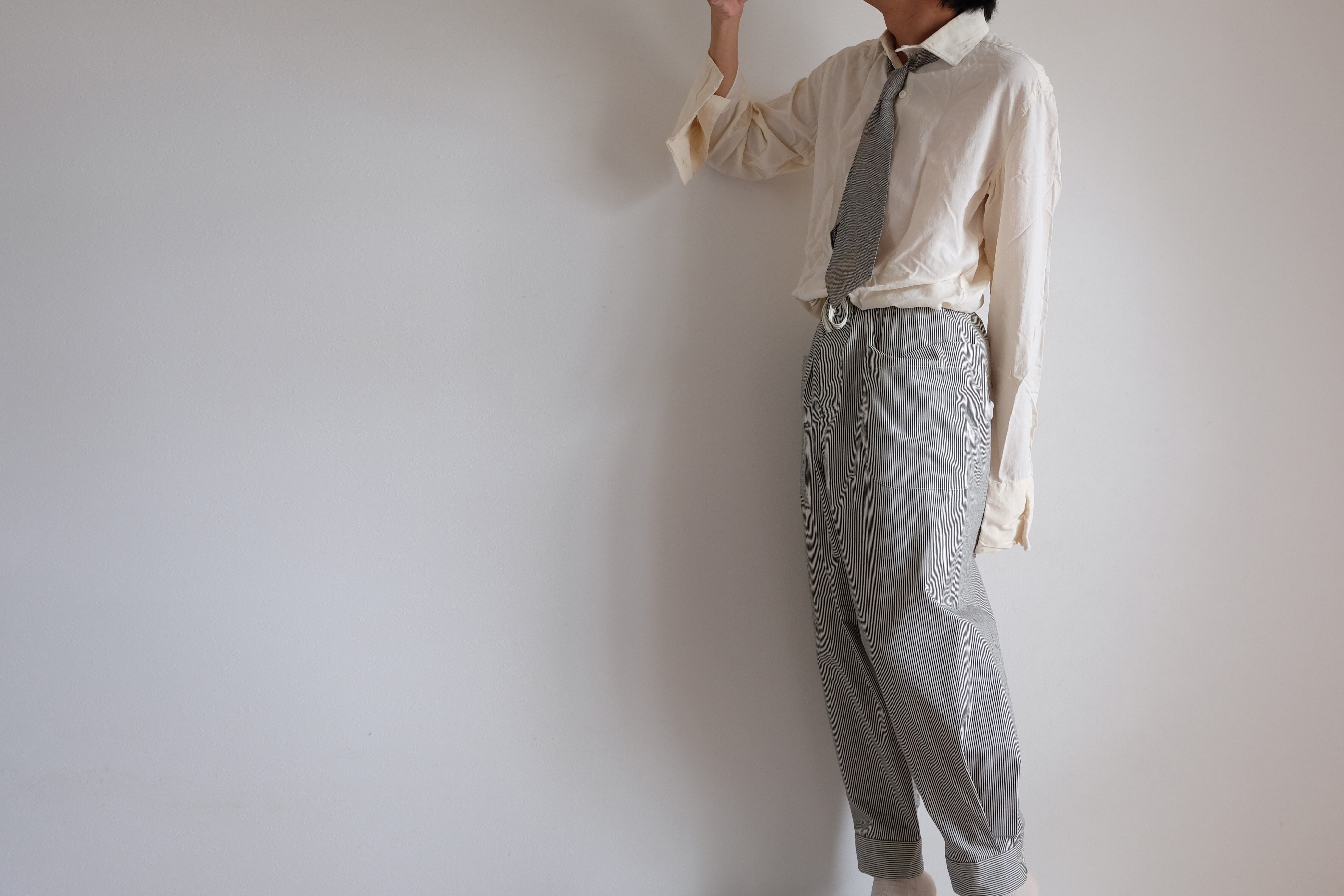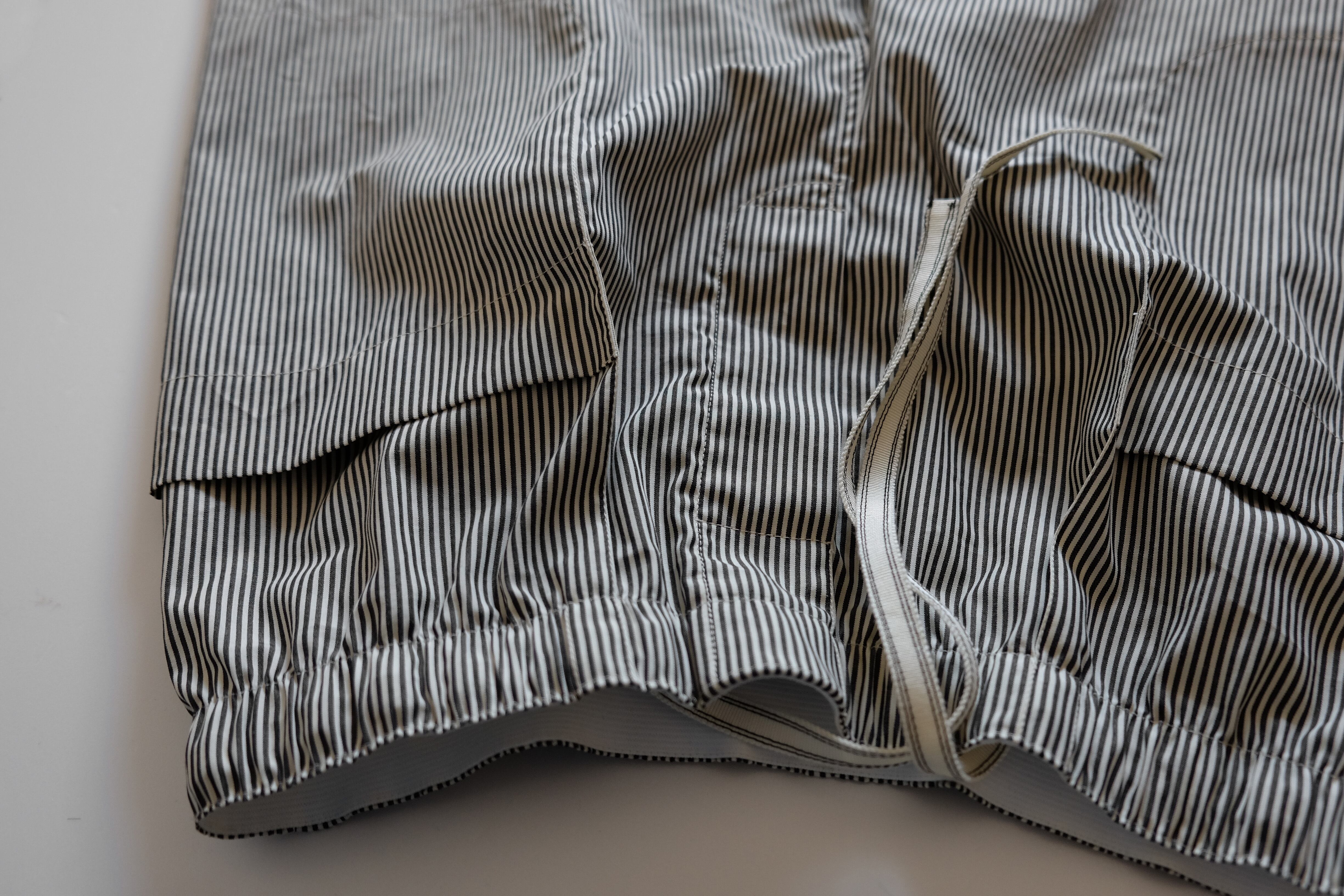シャツ袖パンツ / コットン【クリーム&ダークグレー / ロンドンストライプ 】/ shirt sleeve pants / cotton【cream & dark gray /London stripes】 | 1o(wano-/ワンオー)丁寧な手仕事・ファッション・帽子・服・プリントTシャツの通販