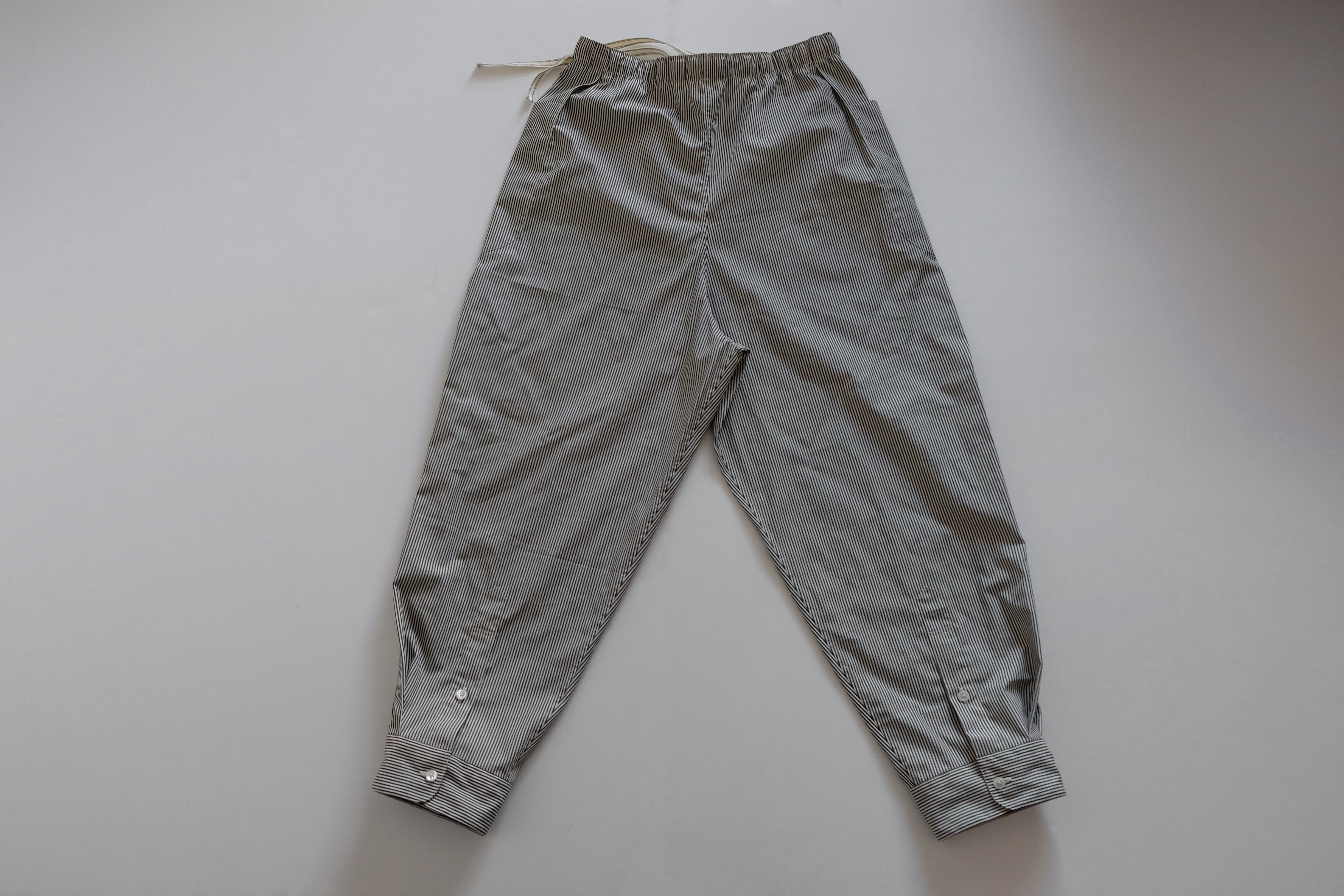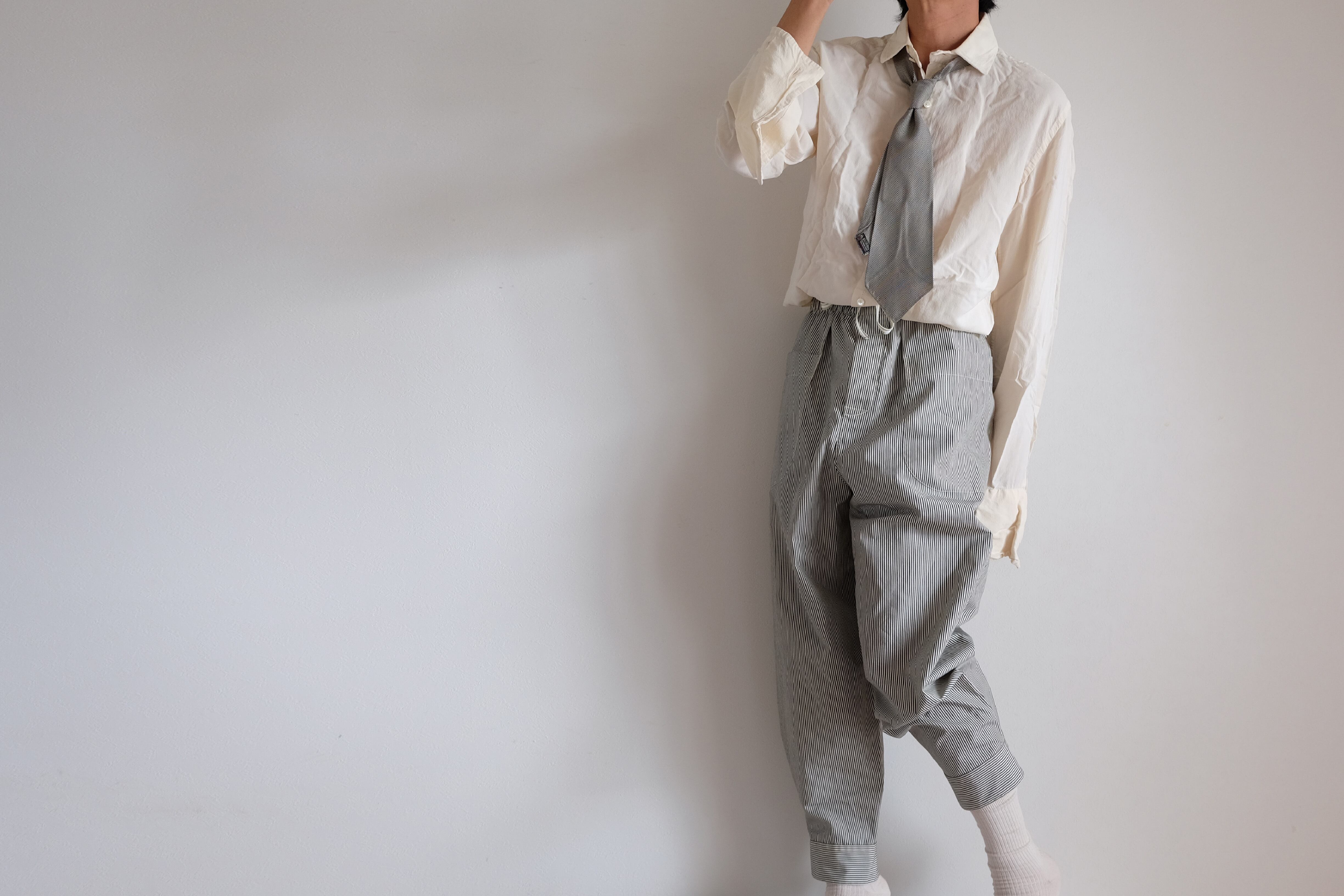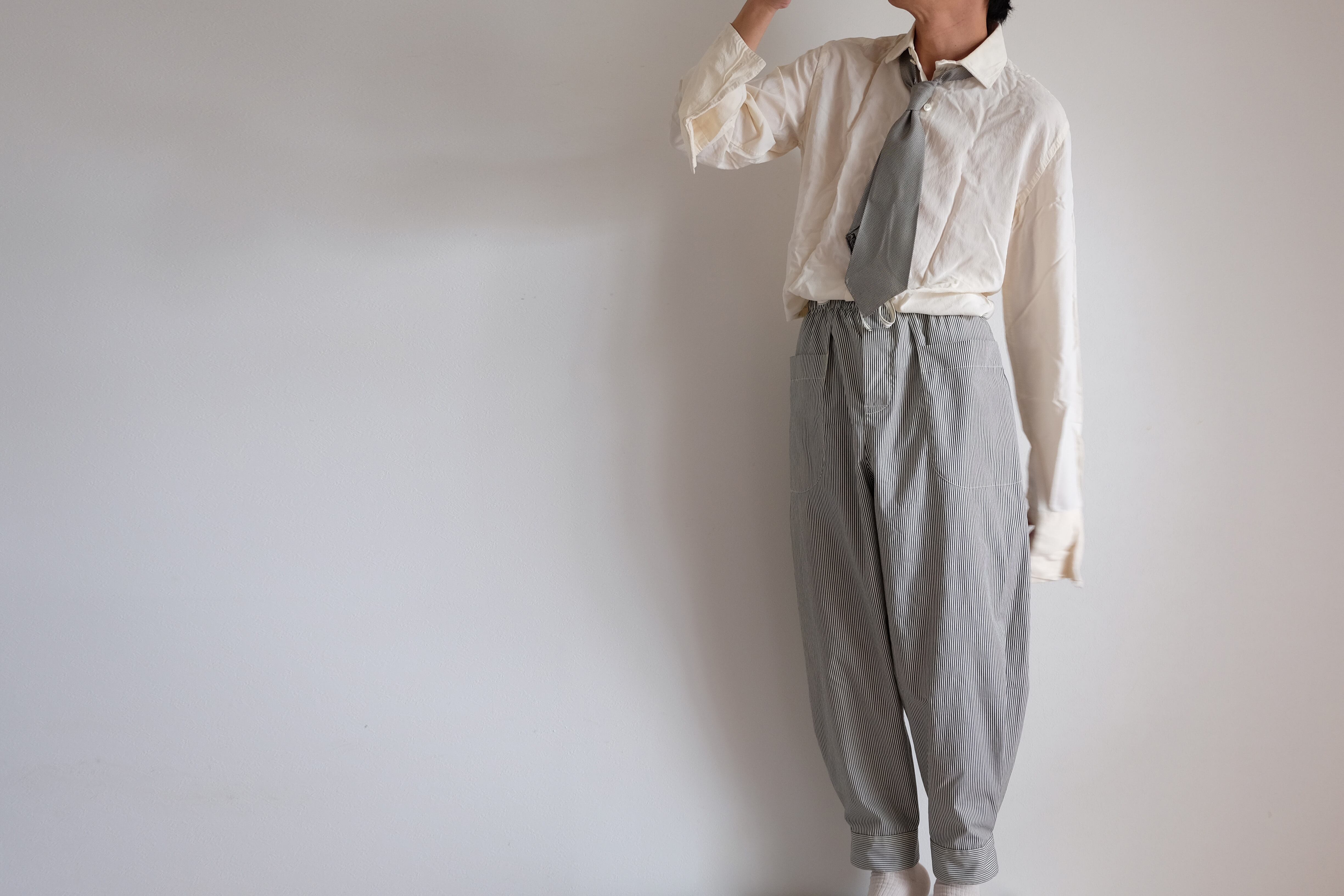 シャツ袖パンツ / コットン【クリーム&ダークグレー / ロンドンストライプ 】/ shirt sleeve pants / cotton【cream & dark gray /London stripes】 | 1o(wano-/ワンオー)丁寧な手仕事・ファッション・帽子・服・プリントTシャツの通販