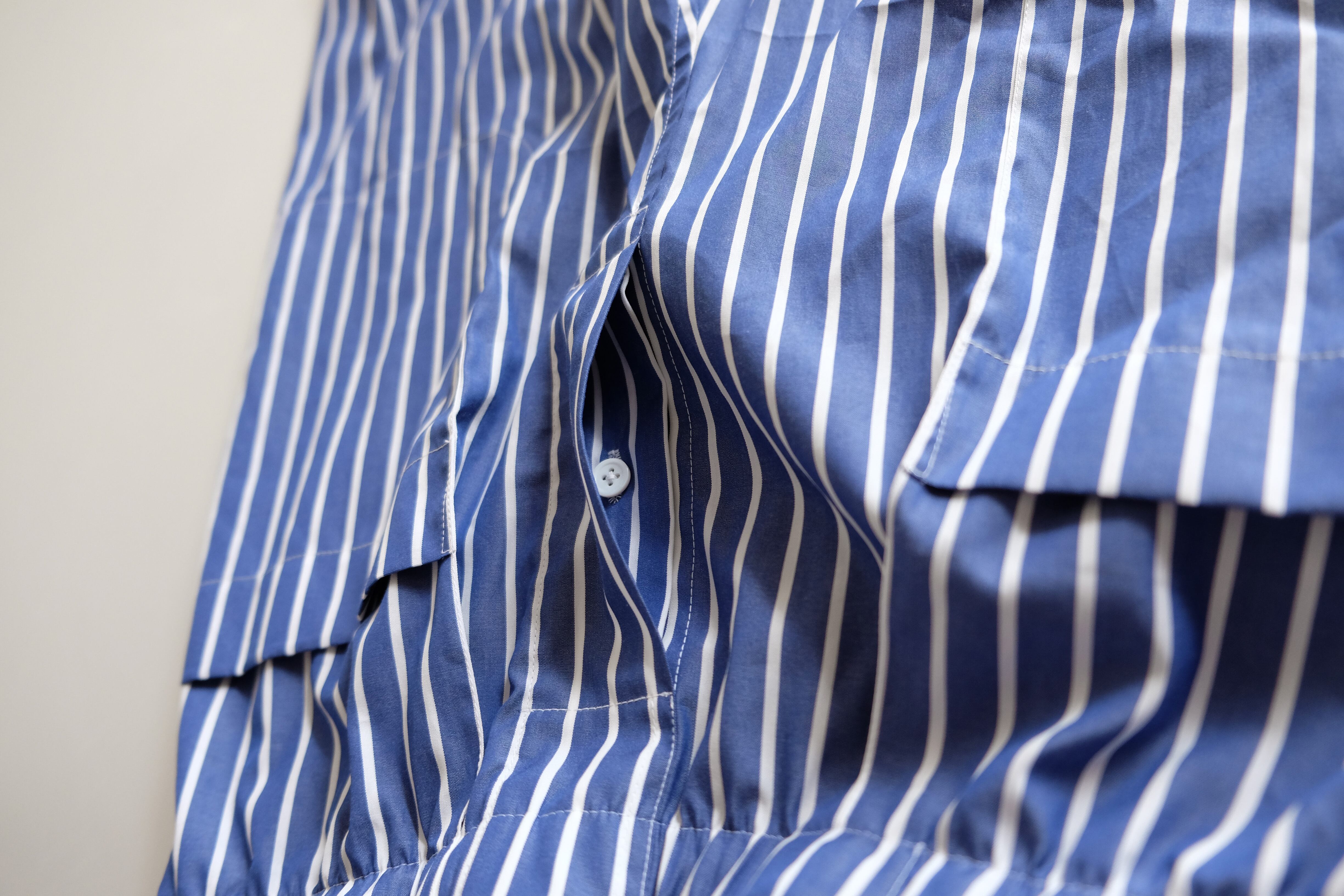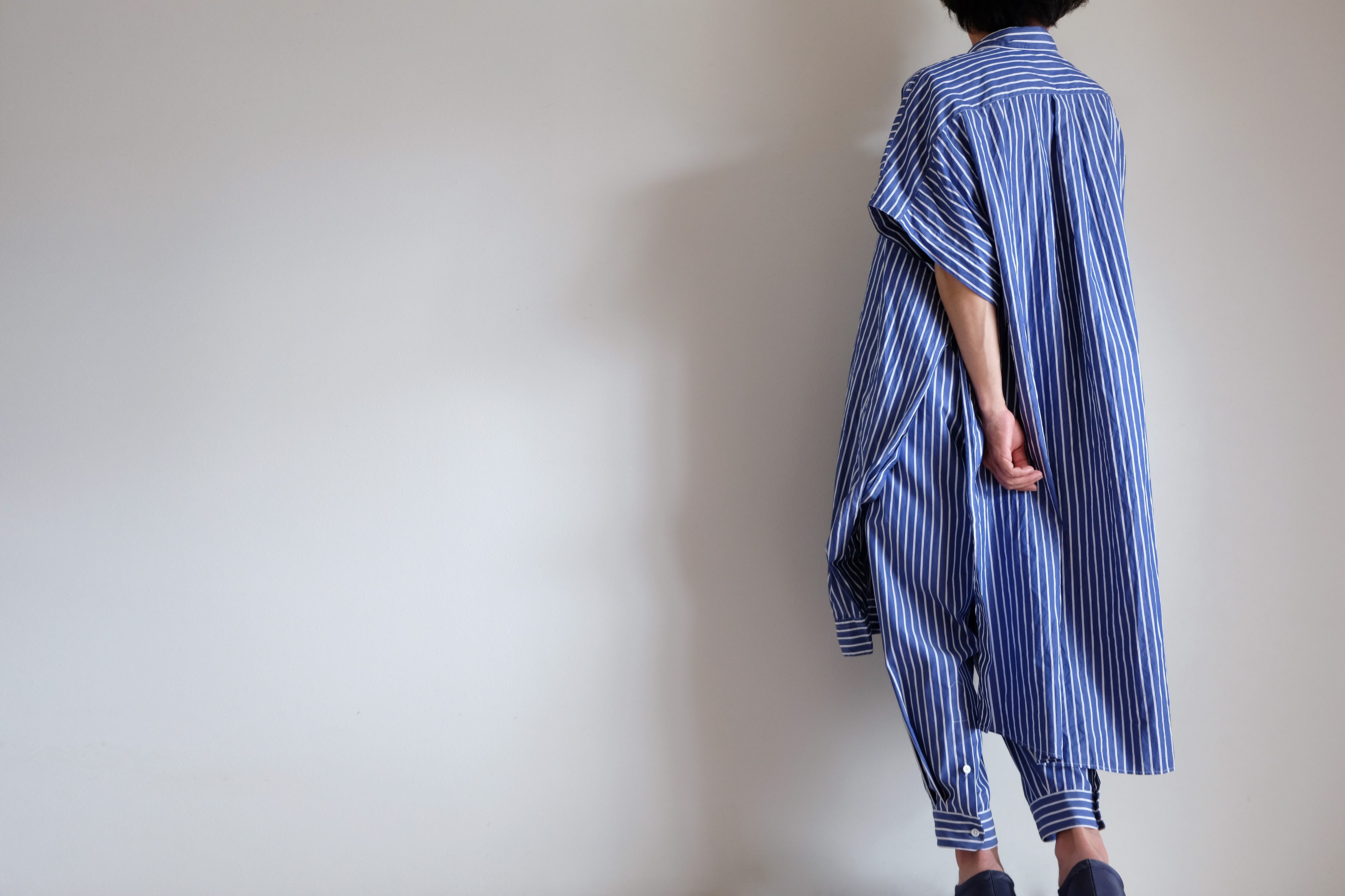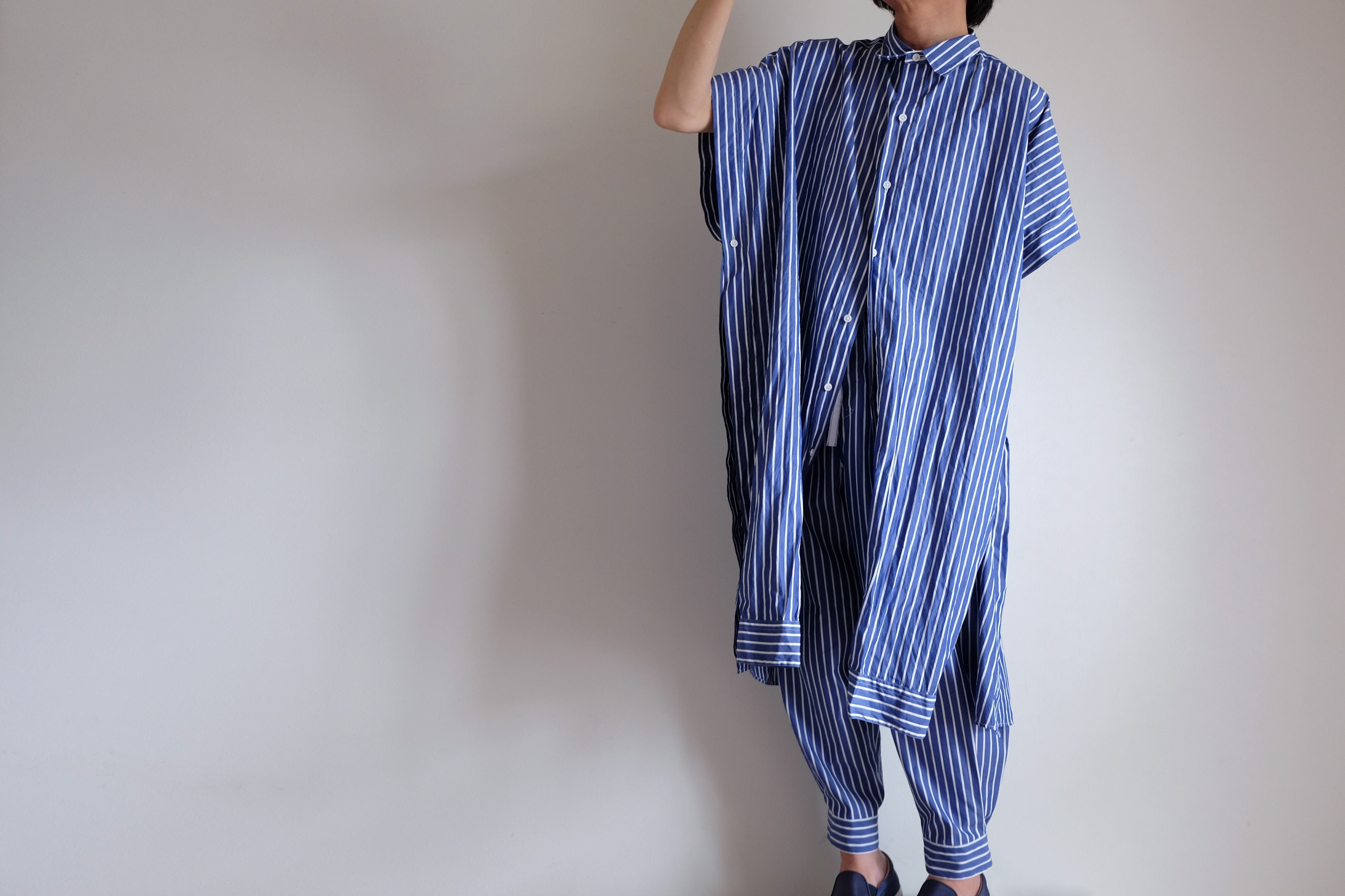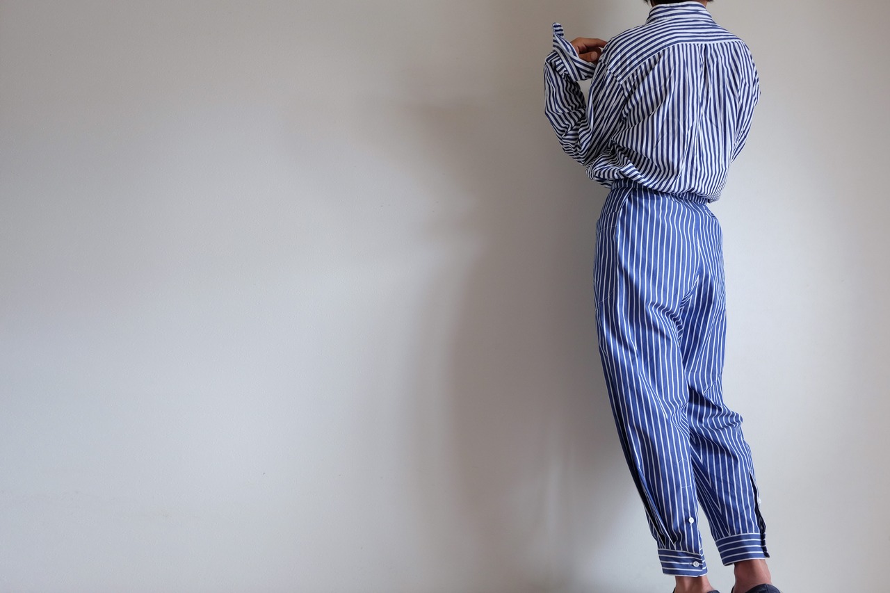 シャツ袖パンツ / コットンシャンブレー ストライプ 【青紺と白】/ shirt sleeve pants / cotton stripe【navy blue & white】