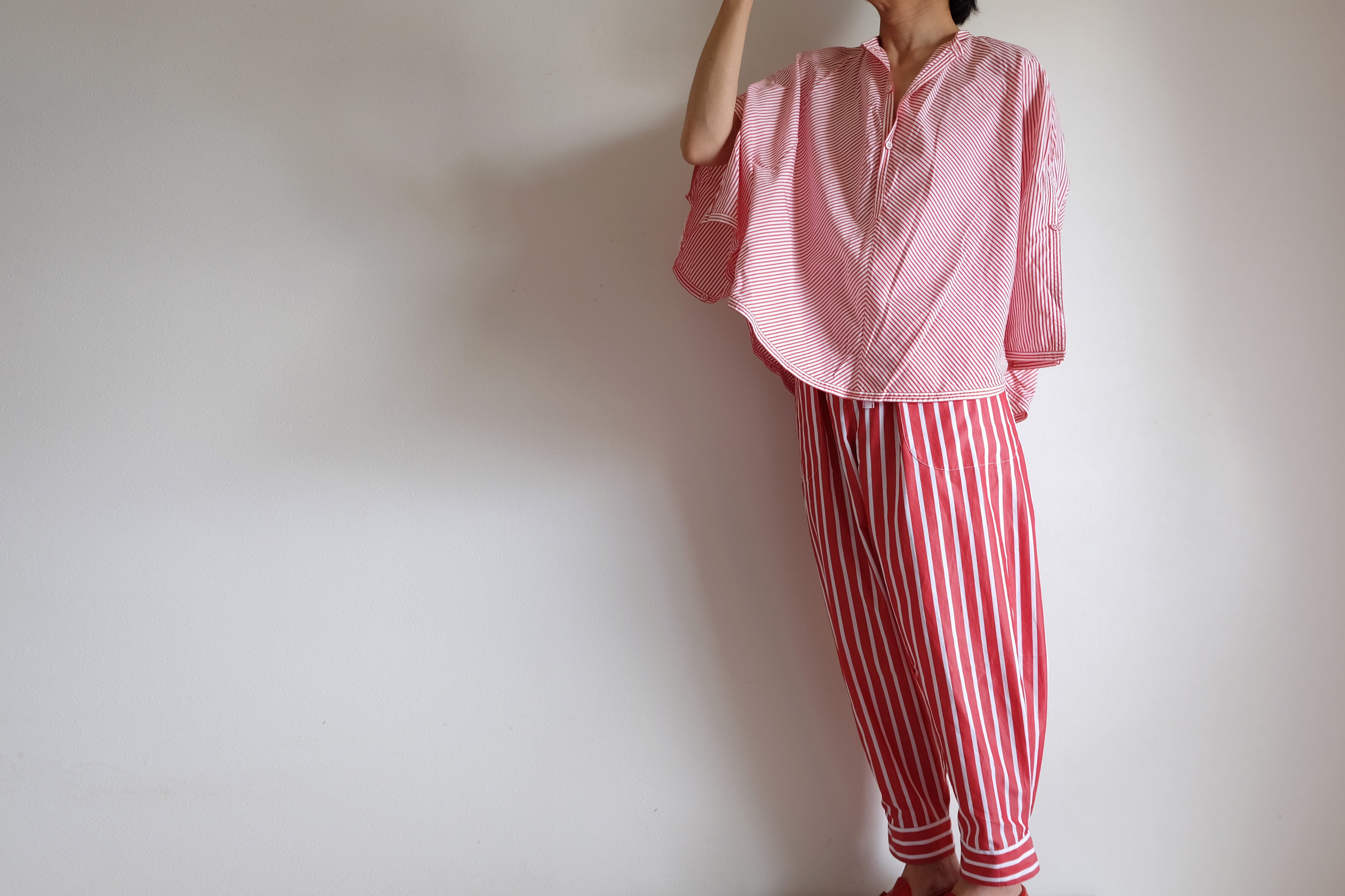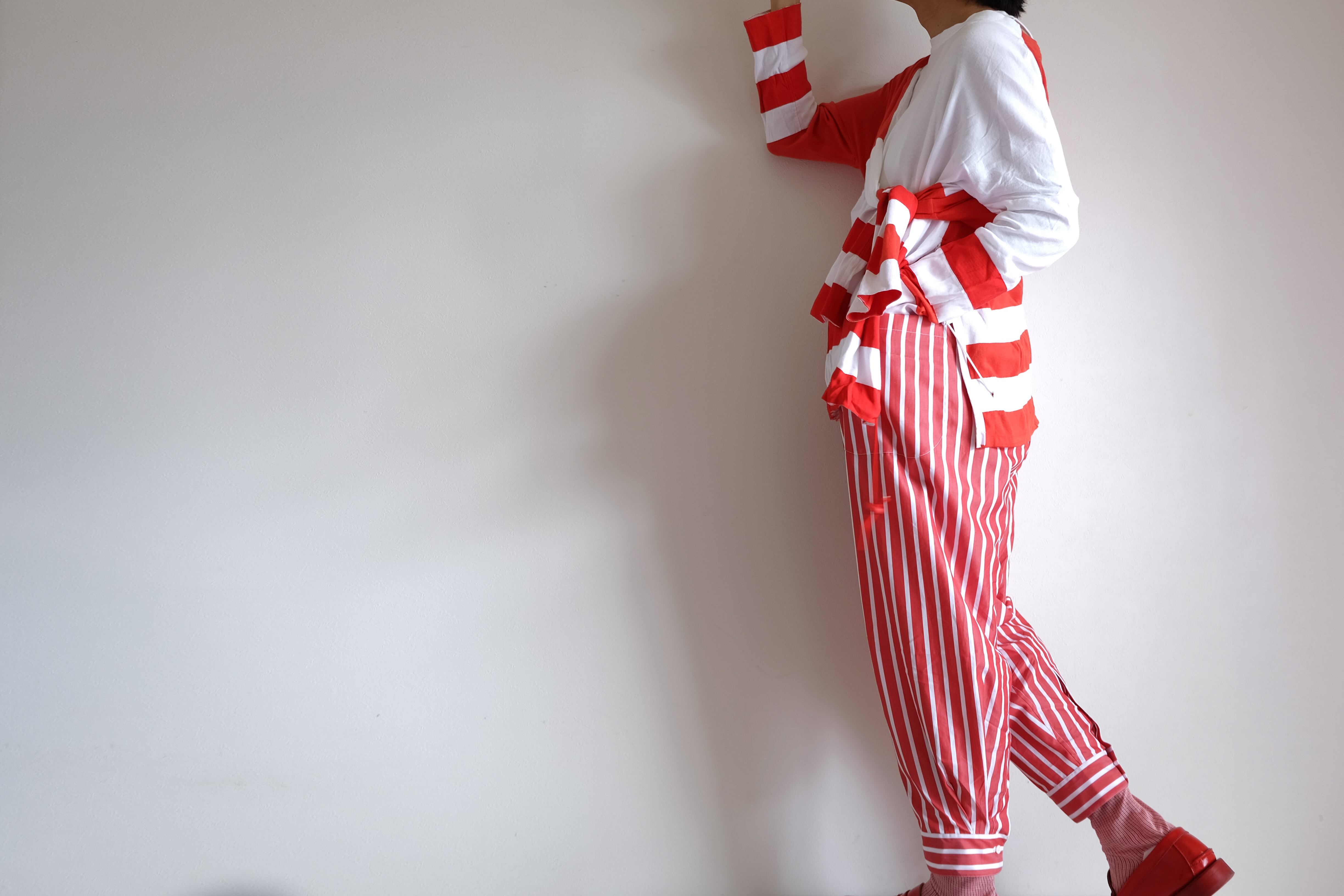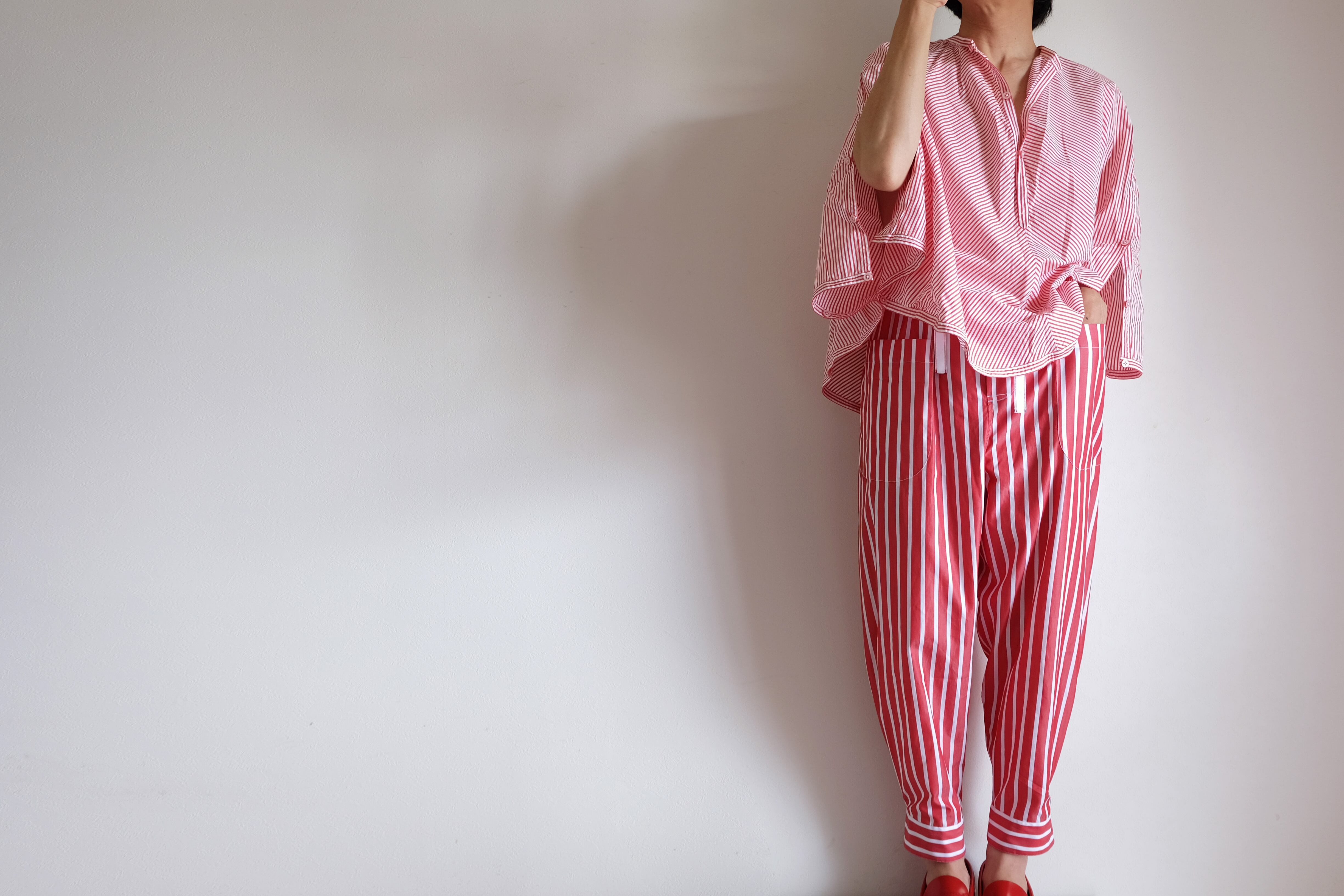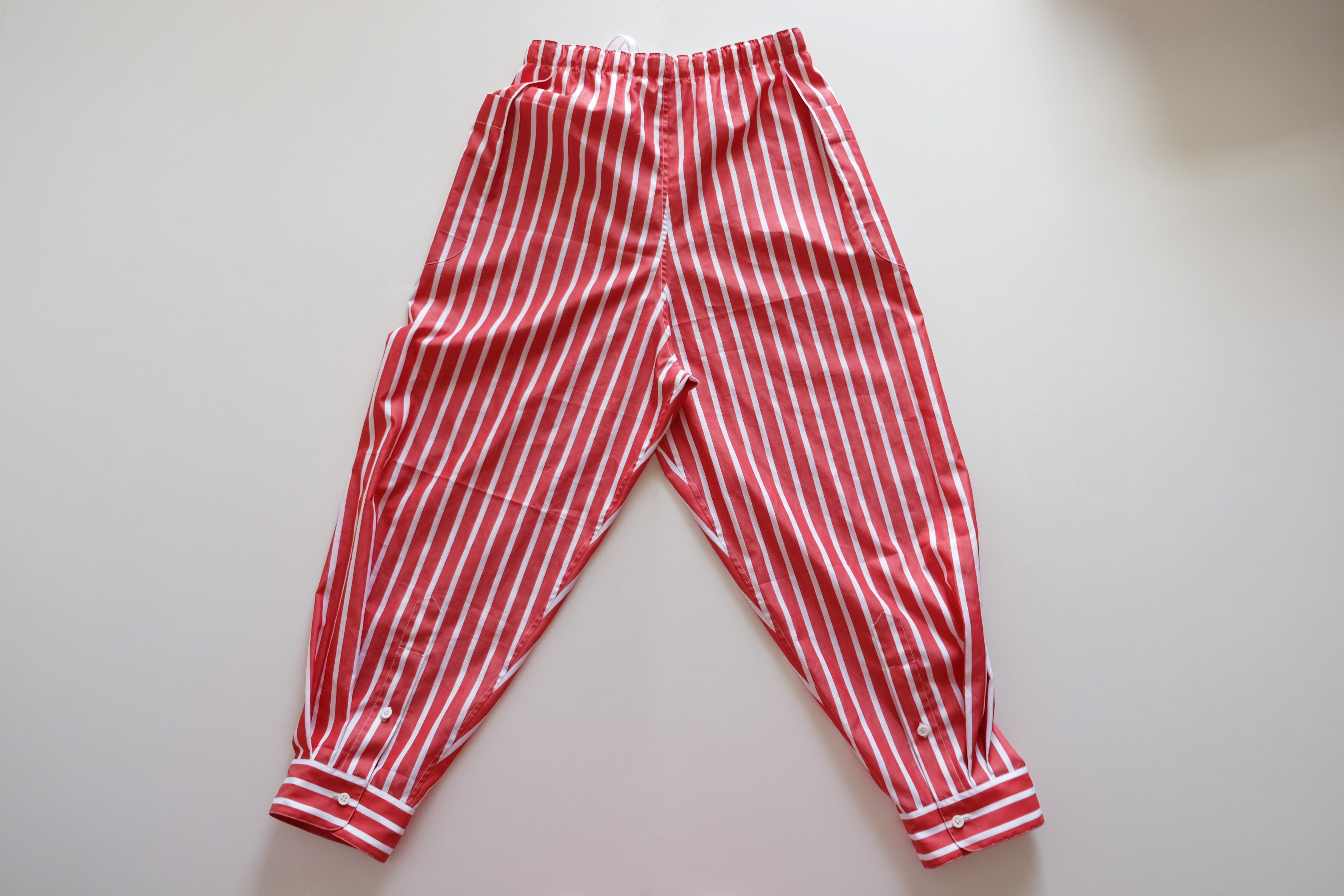 シャツ袖パンツ / トーマスメイソン コットン 太ストライプ【白と赤】/ shirt sleeve pants / THOMAS MASON cotton stripe【white & red】 | 1o(wano-/ワンオー)丁寧な手仕事・ファッション・帽子・服・プリントTシャツの通販