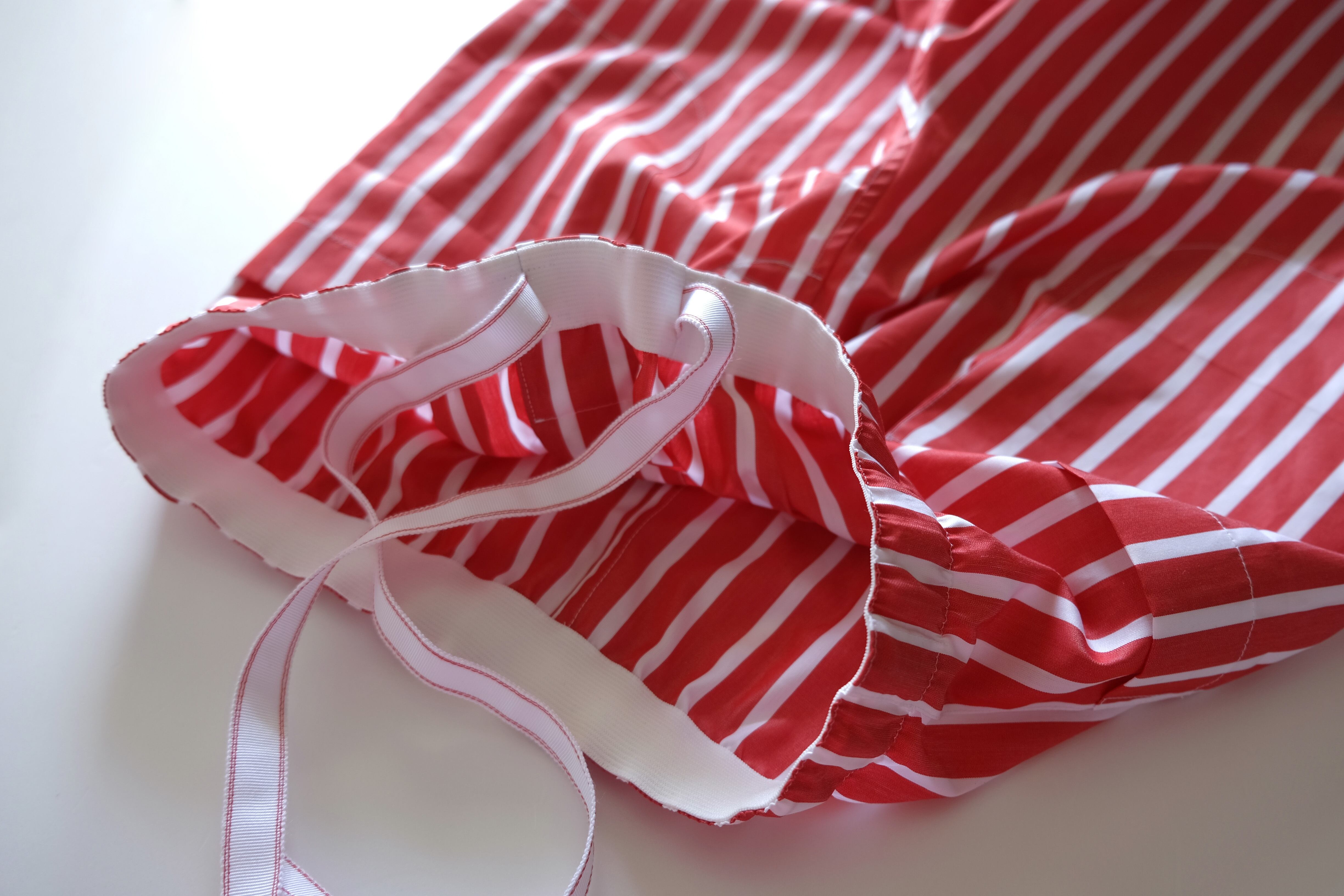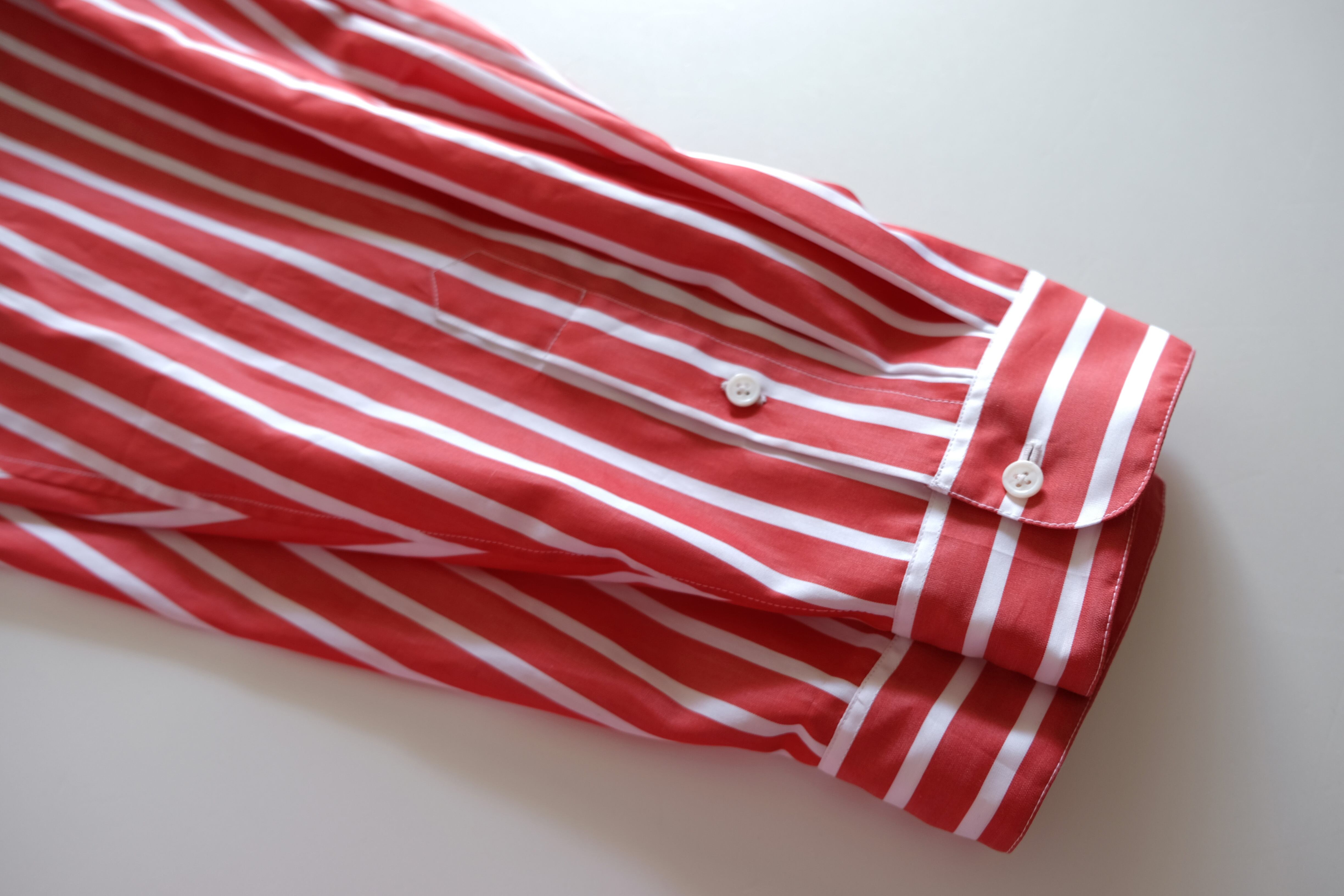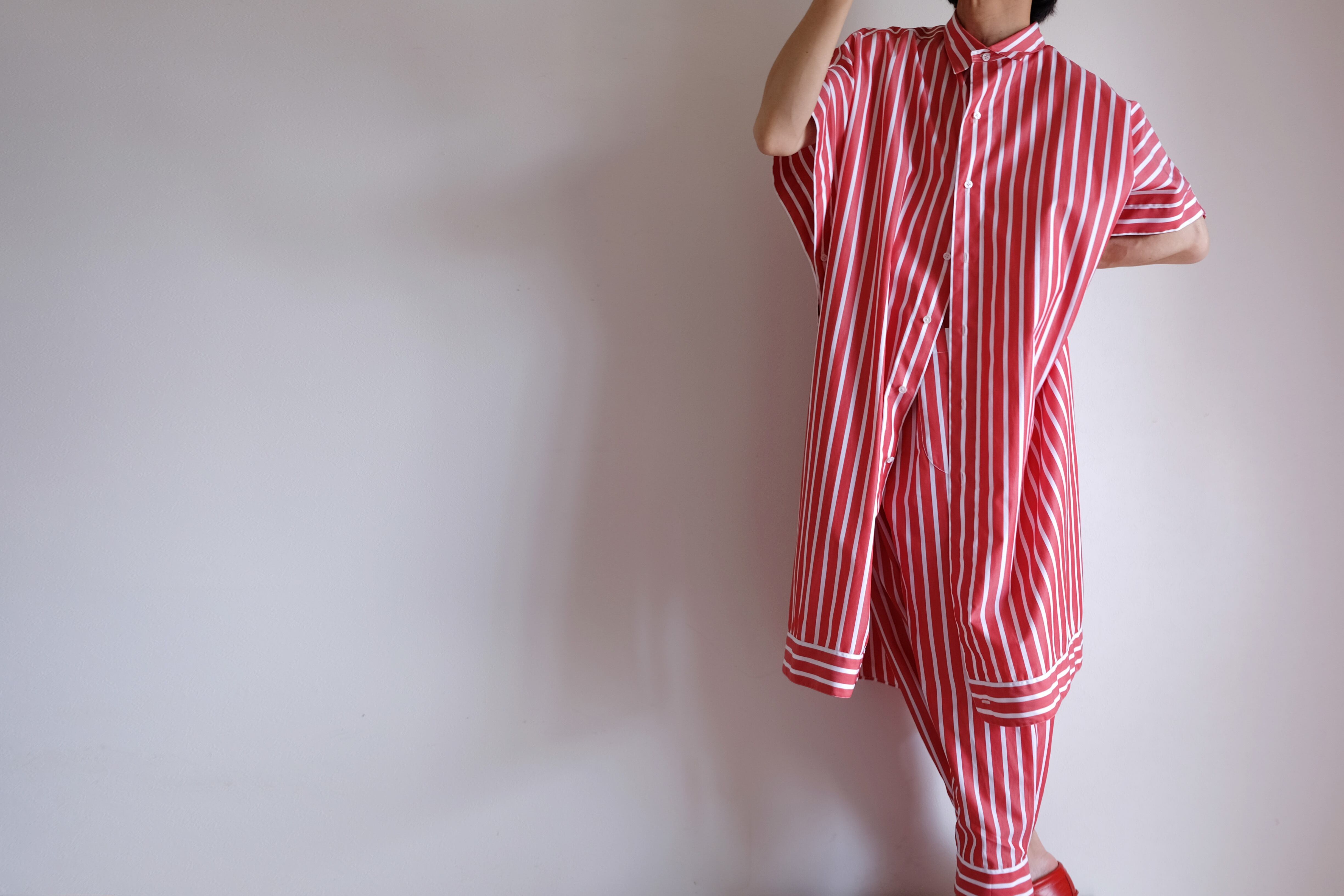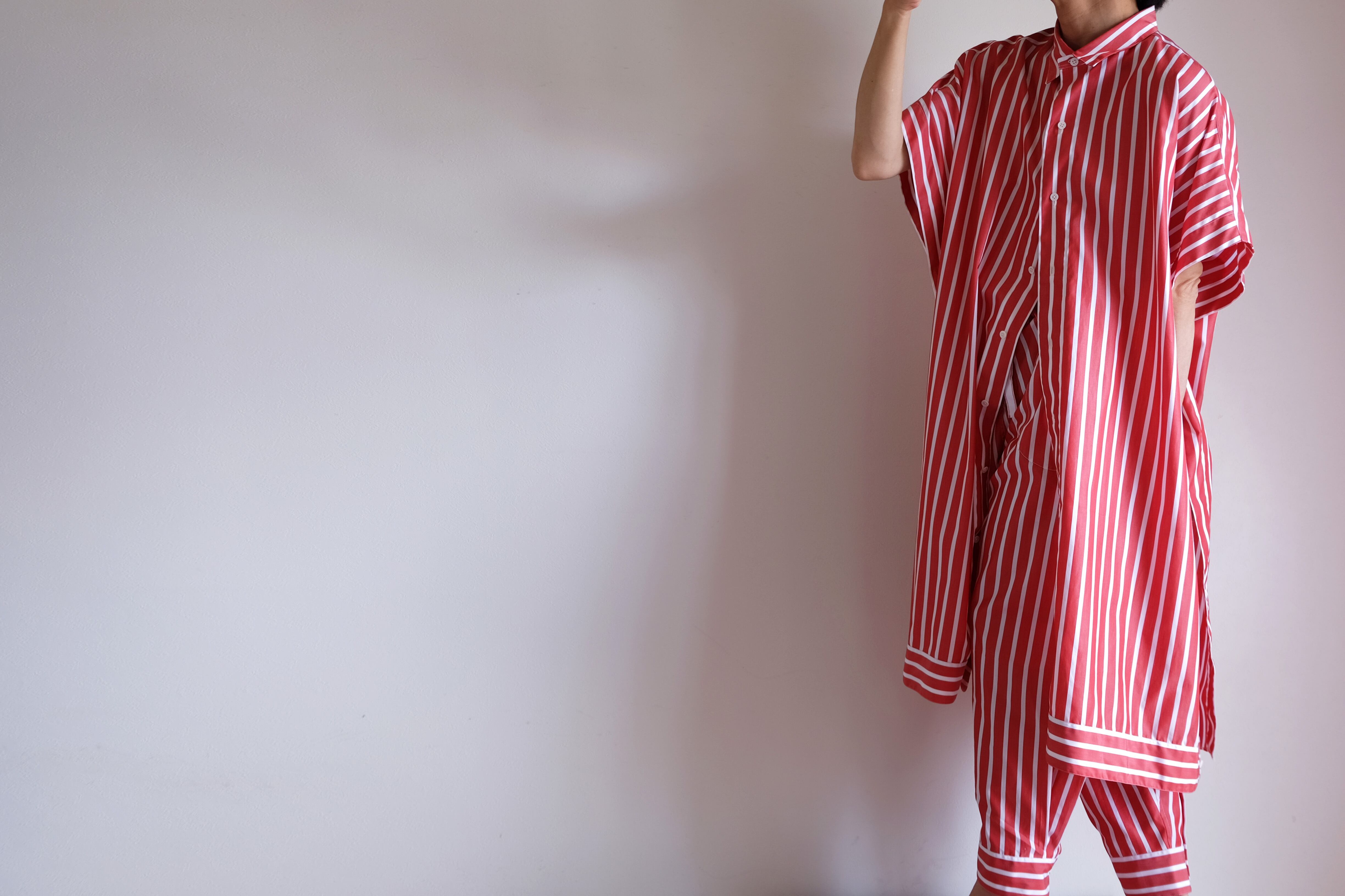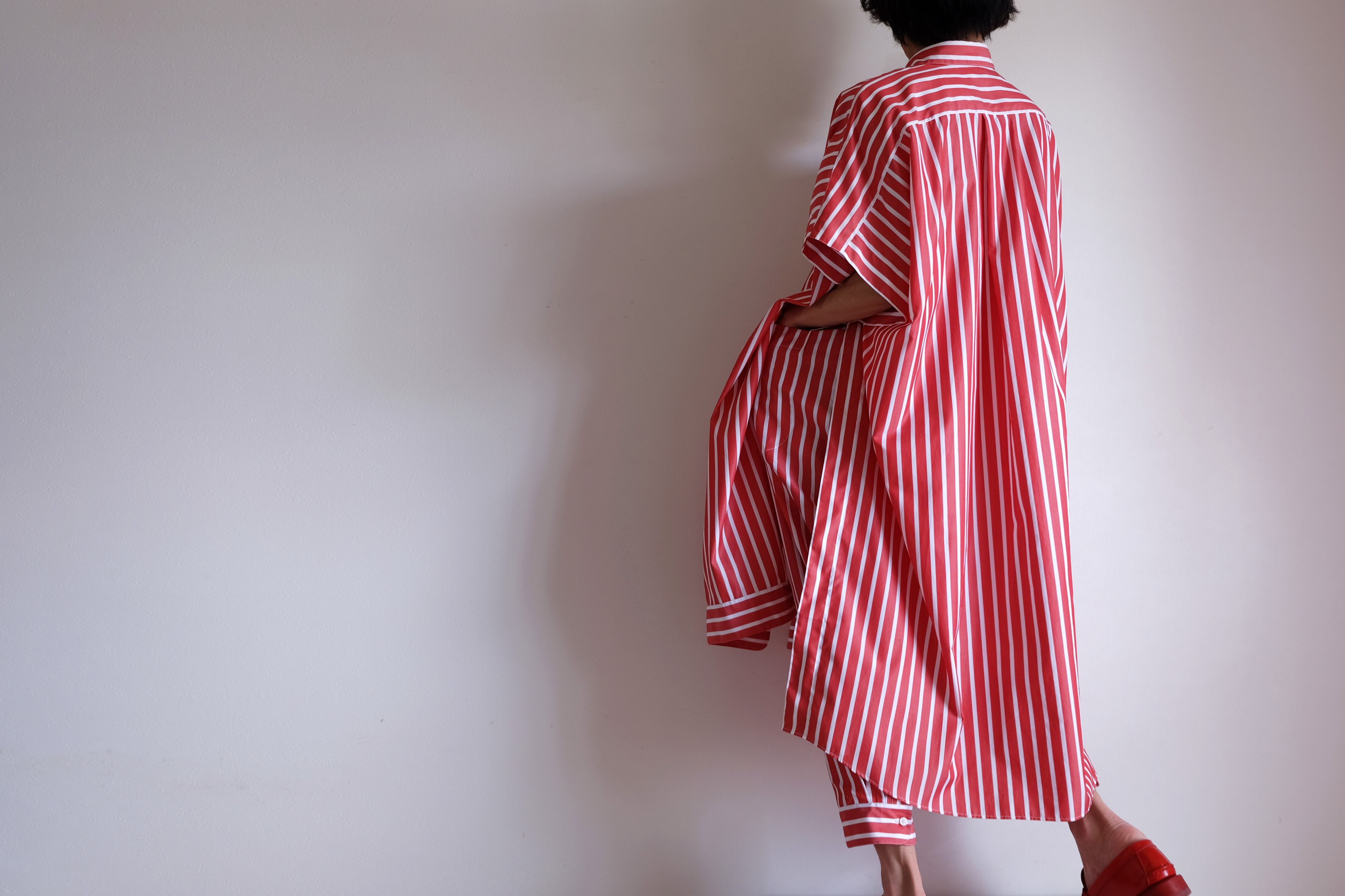 シャツ袖パンツ / トーマスメイソン コットン 太ストライプ【白と赤】/ shirt sleeve pants / THOMAS MASON cotton stripe【white & red】 | 1o(wano-/ワンオー)丁寧な手仕事・ファッション・帽子・服・プリントTシャツの通販